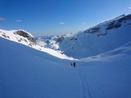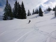 Der Schnee war stark windgepresst und wies einen Deckel auf, welcher bei Belastung durchbrochen wurde. Aufstiegsspur war einfach anzulegen. Die Abfahrt hat Spass gemacht. In den Mulden befand sich Triebschnee.