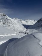 War etwas überrascht von der Prognose SLF Stufe gross. Nach meiner Einschätzung „erheblich +“ mit Vorsicht an steilen und grossen Flanken, überhaupt keine spontane Abgänge gesichtet, Schnee hat sich gut gefestigt.
