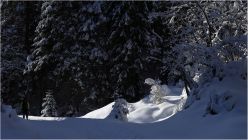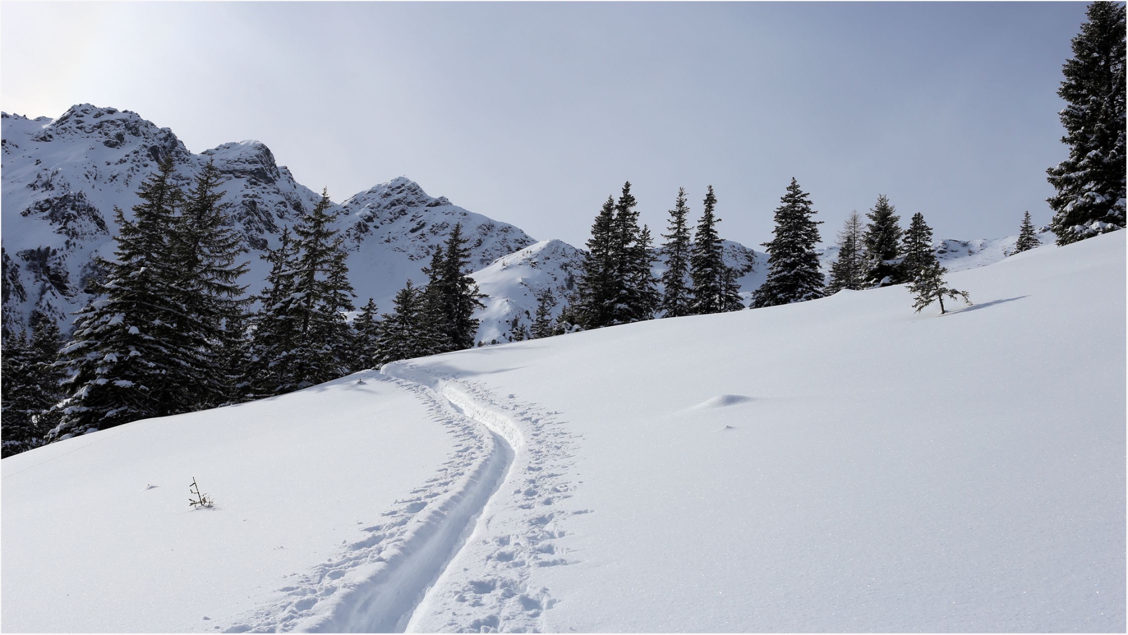 Abfahrt, vom schlechten Licht mal abgesehen superschön, tiefer Pulverschnee - eine Rarität in diesem Winter.