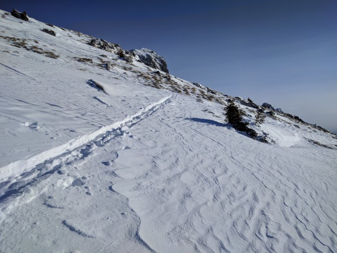 Dank Neuschnee die ganze Tour wieder genügend eingeschneit. Gipfelflanke ab Grenchengalm eisig mit rutschigem Triebschnee, aber gut machbar.
