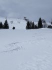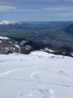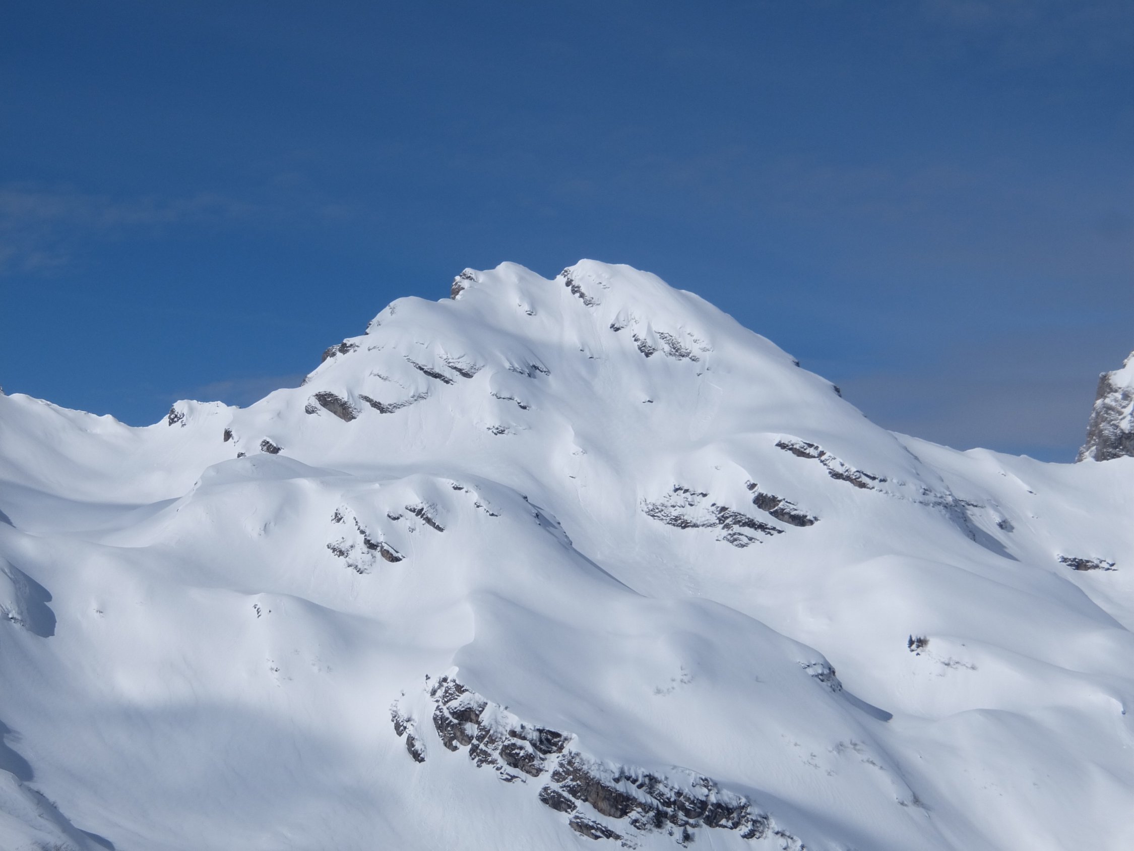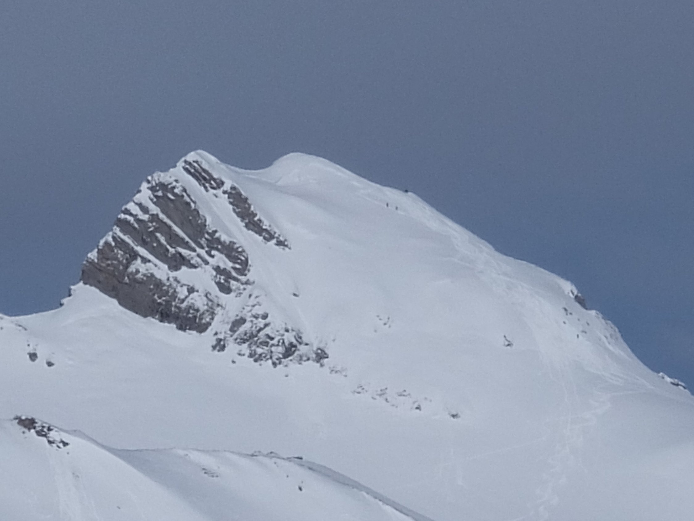 Start ab erstem Parkplatz vor Hüseren (Kreuzung) auf 1 cm Hartschnee. Route vorbei am Skihaus war teilweise vom Vortag schon gespurt. Punktuell machte sich der Föhn bemerkbar, schon früher als erwartet. Der Gipfelhang nach der Alp Arina hatte generell windgepressten Pulver, mal weniger mal mehr. Im mittleren Teil der Abfahrt dann schon sehr schweren Schnee. Im unteren Teil ist uns der Schnee inzwischen weggeschmolzen, auf den steinfreien Wiesen braucht es aber nicht viel, laufen mussten wir nur die letzten 200 Meter.