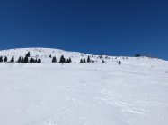 In vorhersehbarer Zeit geht es nicht mehr ab Hüseren ohne Tragen. Selbst wenn man trägt macht es nur Sinn wenn der Schnee im mittleren Teil kompakter wird und dann auffirnt. Die Menge ist noch beachtlich und auch der Hang neben Alp Arina ist noch nicht abgeblasen.