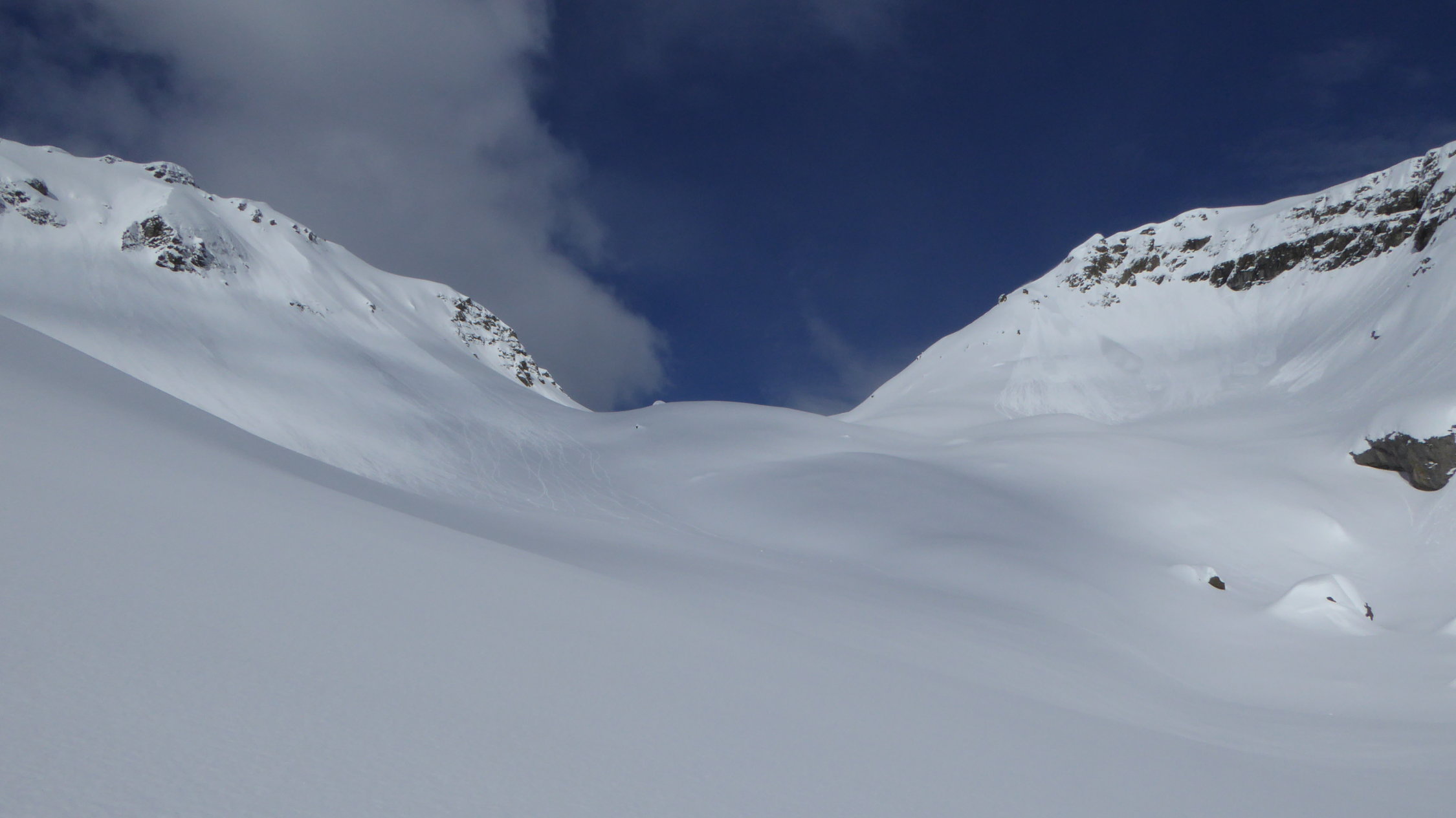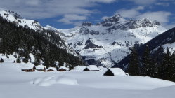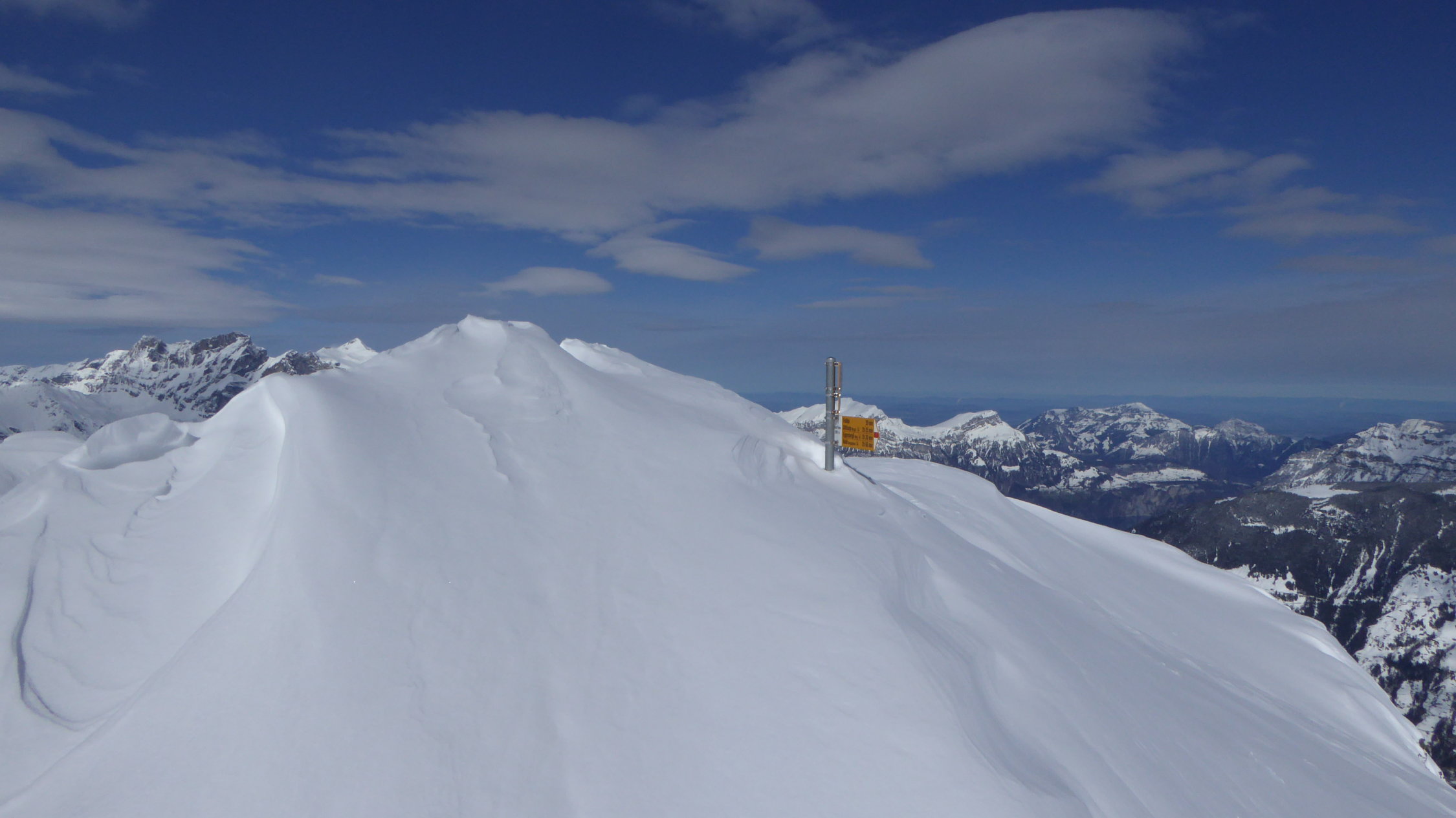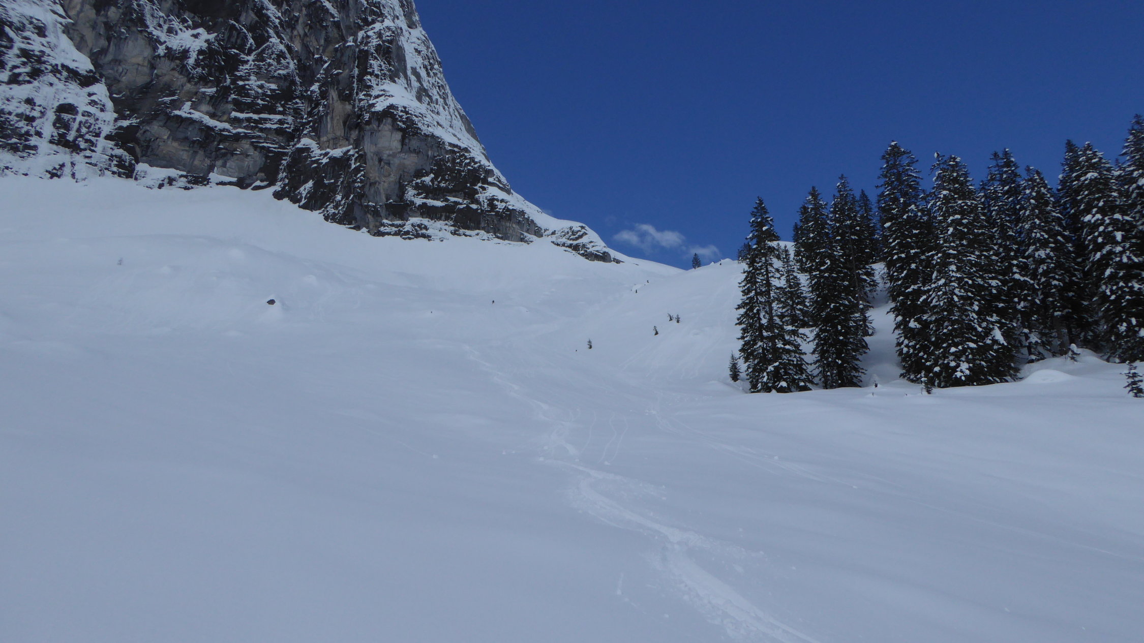 Das "ausgezeichnet" bezieht sich vor allem auf die Schneeverhältnisse in den steileren Nord- / Nordost-Expos, wo zwar nicht "Canada Pow" aber doch traumhaft schöner Pulver genossen werden konnte. Je tiefer man kam - ab ca. Flösch - dann schwerer und je nach Expo nasser Schnee. Die Ausnahme bildete noch der traumhafte Osthang südlich von P. 1743.