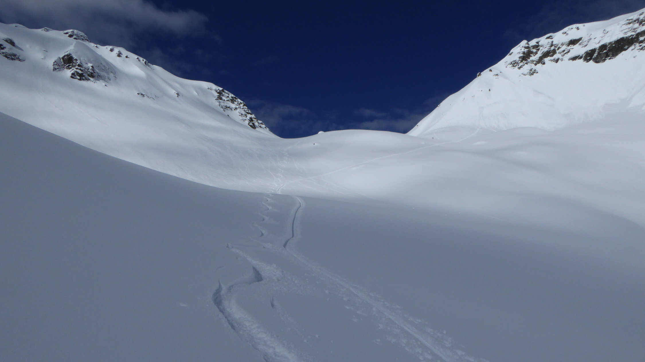 Mit der prognostizierten Wärme war's das mit dem Pulver - das Gebiet selbst bleibt schön (und noch nicht mit vielen Spuren versehen), einzig muss man die Ansprüche an die Schneequalität reduzieren)