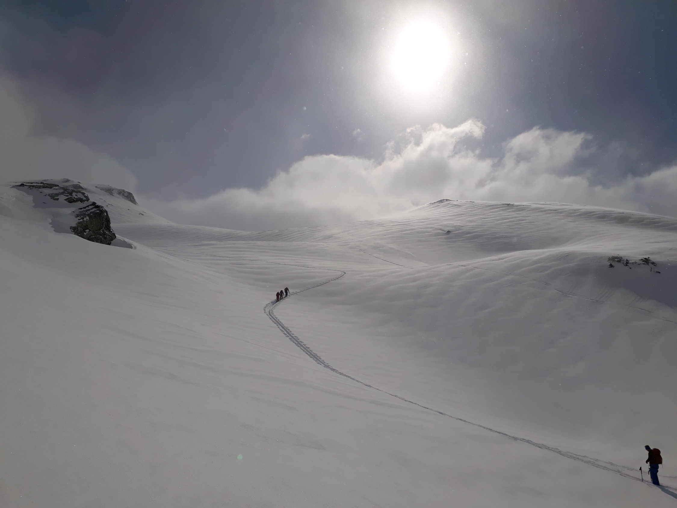 Sa/So wechselhaftes Wetter mit viel Wind und viel Neuschnee von Sa auf So. Am So kritische Lawinensituation, daher niemand auf dem Wildstrubel. Heute Montag wurden wieder alle gängigen Gipfel gemacht. Grösstenteils schön zu fahrender Pulverschnee, der in den sonnenexponierten Himmelsrichtungen natürlich rasch zu Bruchharst oder dann zu Sulz wird.