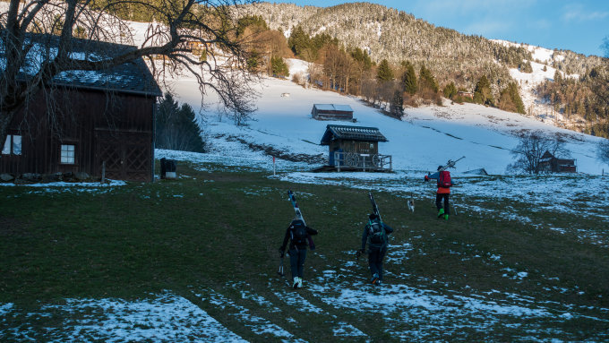 Mit den warmen Temperaturen wird die Tragestrecke grösser und solange es keinen Sulz oder Neuschnee gibt, kaum mehr lohnend.