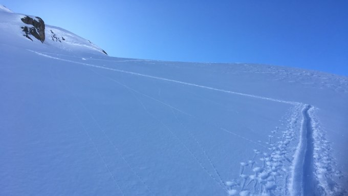 Danke fürs Spuren, vor allem hinauf in die Wäschtällifurgga. Ins Skidepot hinauf war die Spur für uns etwas zu wenig direkt...