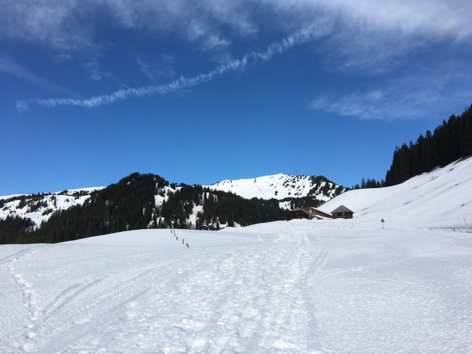 Trotz Wochentag waren zwei weitere Skitourengeher unterwegs. Schneeschuhgeher spurten (vermutlich) ab Stäldeli zum Fürstein. Am Fürstein sind gute Aufstiegsspuren anzutreffen.