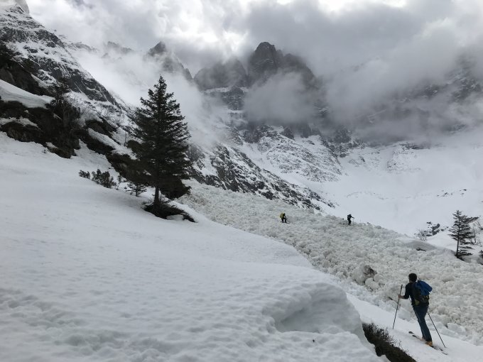 Im Sandbachtal sahen wir viele Lawinenkegel, die über Ostern entstanden waren.