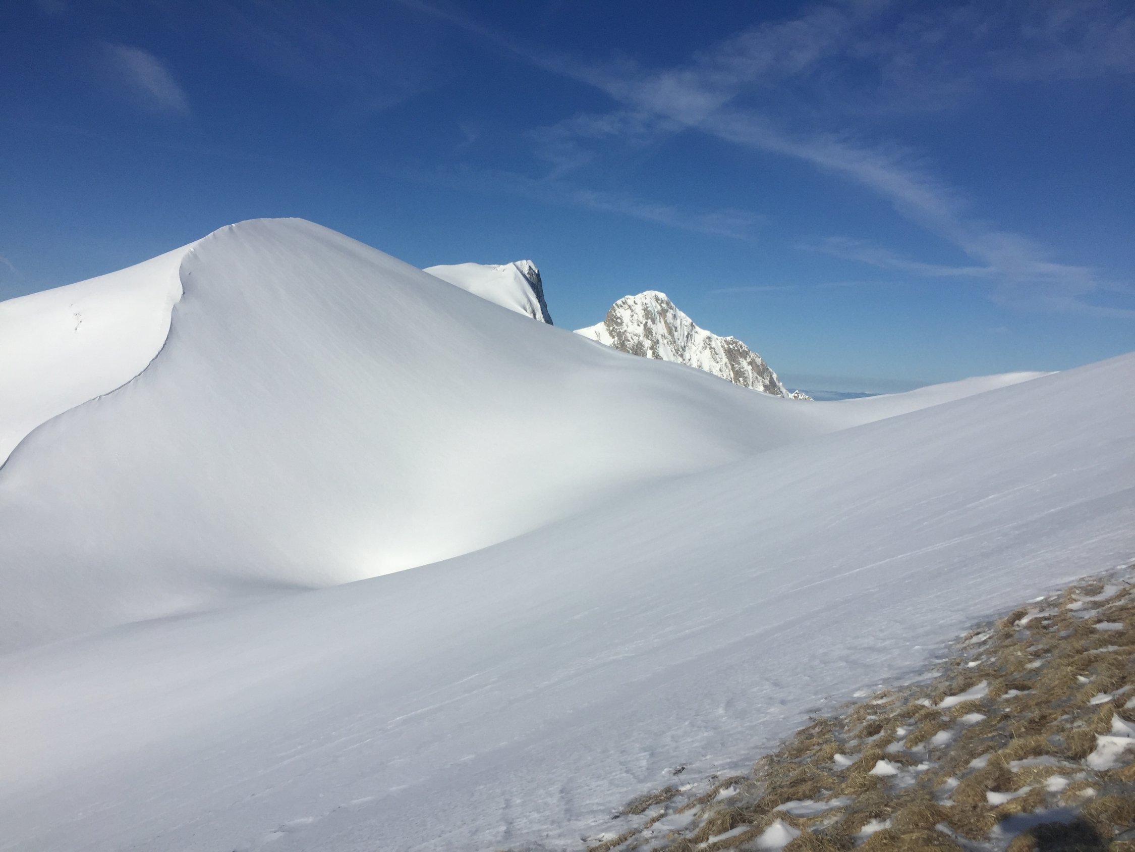 Aufstieg: Problemlos, ausser Morgetenpass. Hier viel Wächtenabbruch und Lawinenschnee. Daher direkte Variante in Falllinie des Passes mit ca. 30hm Skitragen gewählt. Gute Entscheidung!
