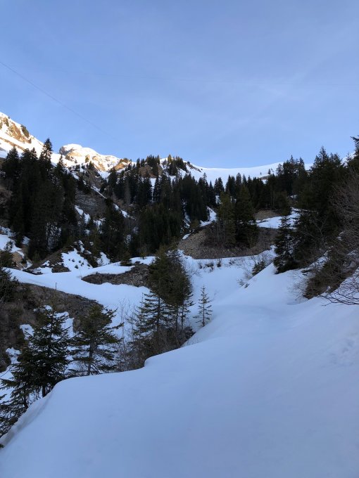 Start Ende Asphaltstrasse auf ca. 1450m, Tragestrecke 5-10 Min. bis kurz vor Im Schwand. Unterlage hart gefroren bis Ottere (Harscheisen von Vorteil), dann zunehmende pulvrige Auflage bis ca. 30cm zuoberst. Am Gipfel grosse Wächte, die nun durchstossen ist (danke nochmals der Schauflerin).