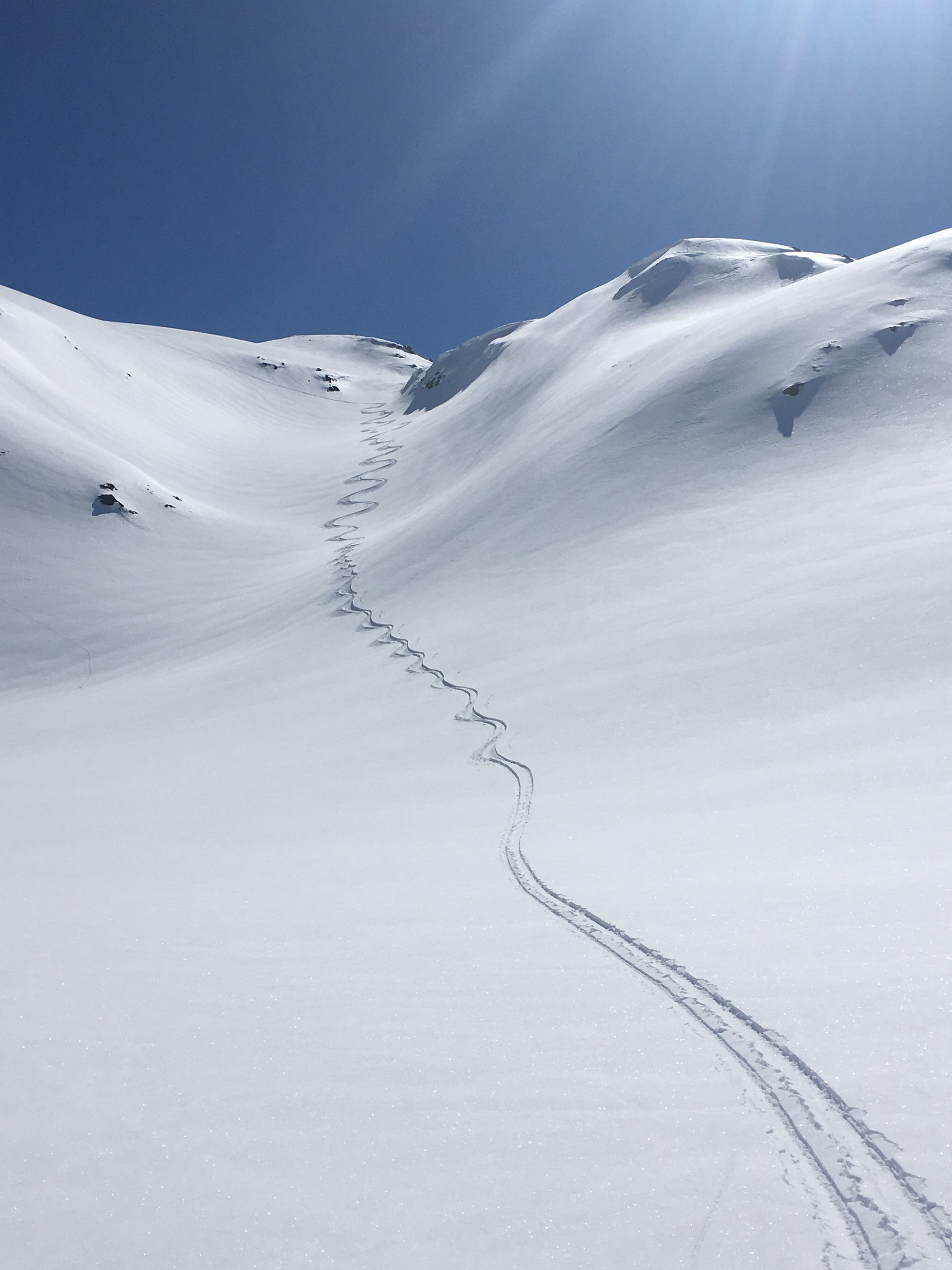 Start Diavolezza Parkplatz 06.15 Uhr, minus 2 Grad, windstill. Perfekter harter Firn die ganze Tour. Der ganze Hang östlich Cho dal Fain ist in den letzten Tagen in mehreren Lawinen heruntergekommen, zum Teil bis zur Ova da Val da Fain. Im Aufstieg habe ich die Lawinen überquert, sehr mühsam, besser auf der anderen Talseite umgehen. Auch Aufstieg zum Piz Minor und Piz Alv Anstieg auf dieser Talseite empfehlenswert. Kurz vor P. 2769 sehr steil aber mit Harscheisen gut machbar (ZS). Hatte vier Stunden bis Gipfel und bin um 10.30 abgefahren. Perfekter weicher Firn, besser geht es nicht, viel Schnee und tolle Aussicht vom Gipfel. Bin bis Bach abgefahren und auf der linken Talseite bis Parkplatz Diavolezza gefahren. Ich war der einzige Tourengänger am Piz Tschüffer. Kann die Tour sehr empfehlen.