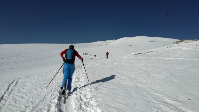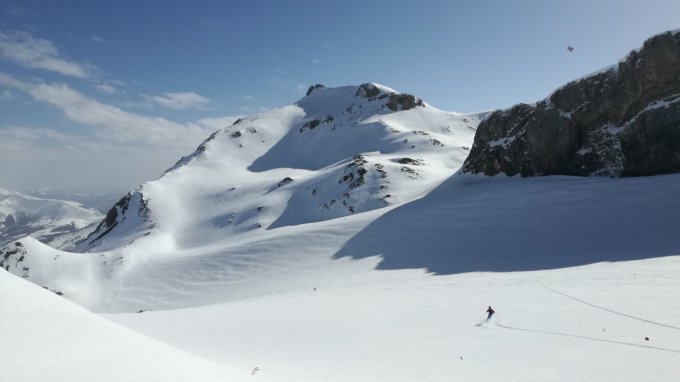 Wir sind nach dem Wildhorn via Iffighorn zurück zum Auto in der Hubelmatte gefahren. Dieser kurze Gegenanstieg ist unserer Meinung nach sehr lohnend —> tolles Skigelände in der Abfahrt. Jedoch wird der sonnenbeschienene Hang rasch feucht und bei solchen Temperaturen auch gefährlich —> timing.