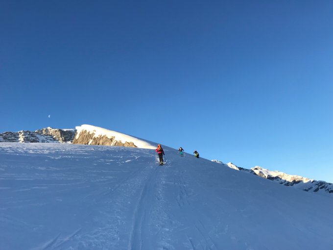 Aufstieg Gemsfairen und Clariden-/Hüffirn sehr gut eingeschneit, gut zu gehen. Nach dem Gemsfeiren wird es ziemlich einsam - erst auf dem Clariden-Gipfel trifft man sich wieder von allen Seiten.