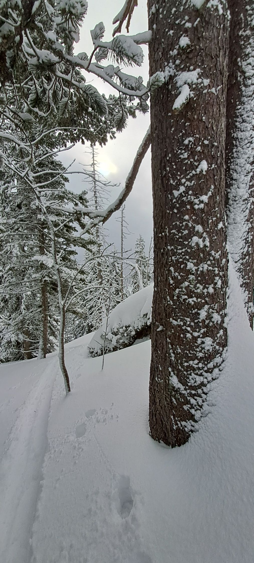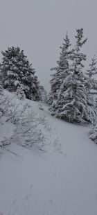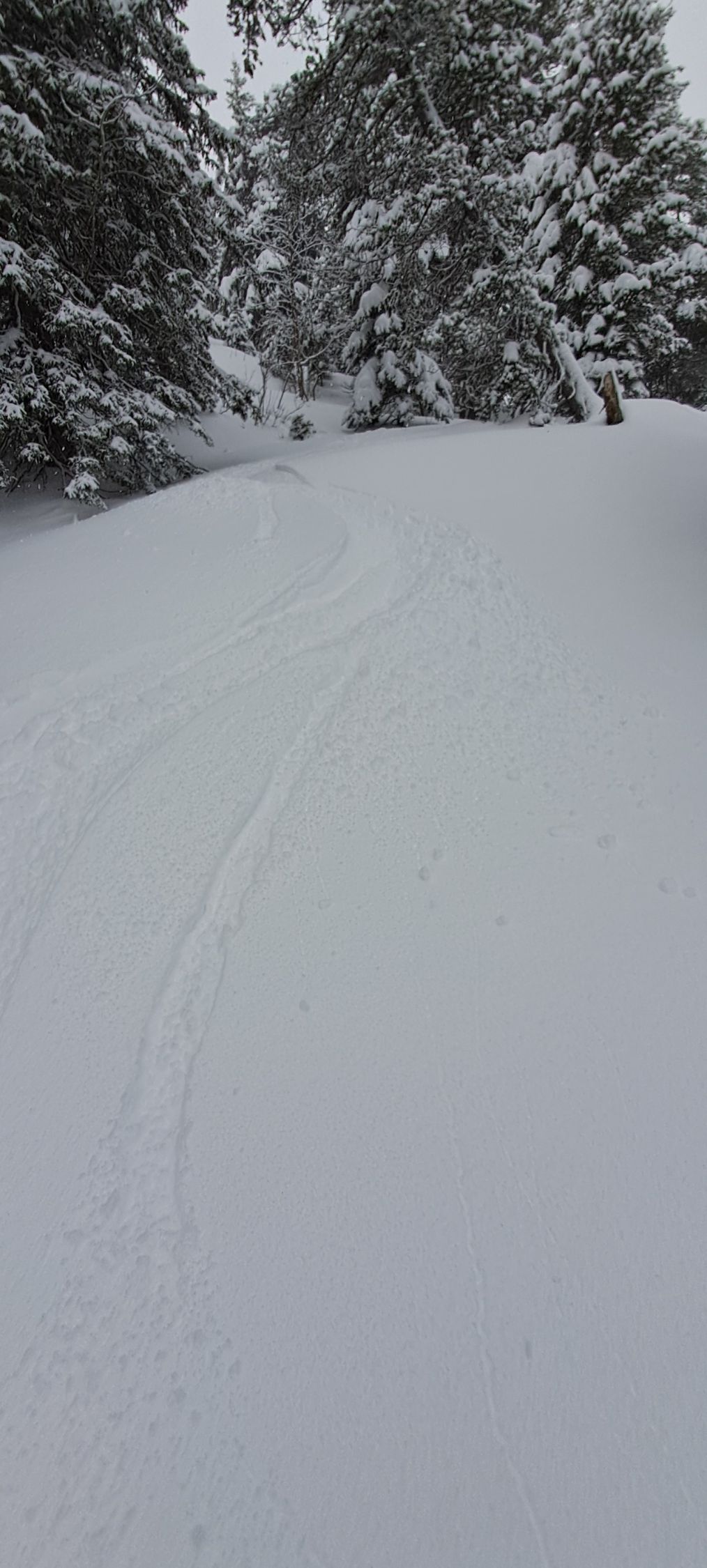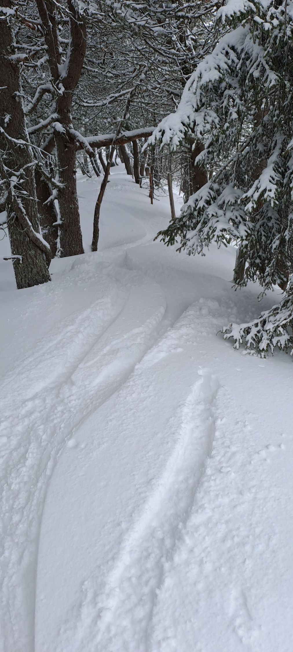 Super eingeschneit.Wenig Wind bearbeitet. Keine Lawinengefahr auf dueser Route.