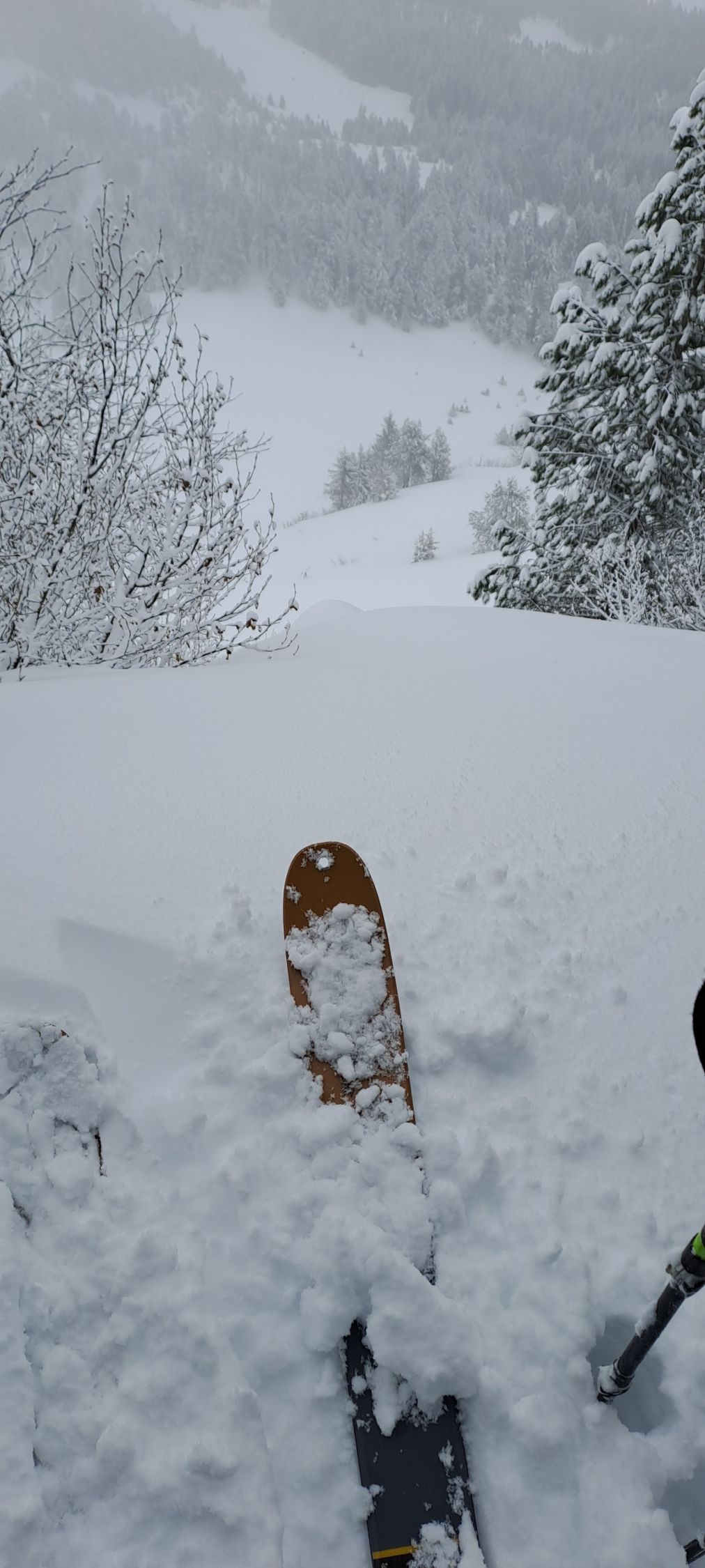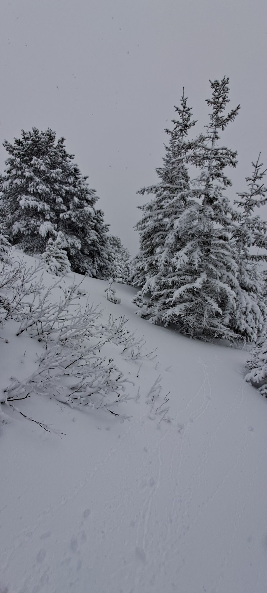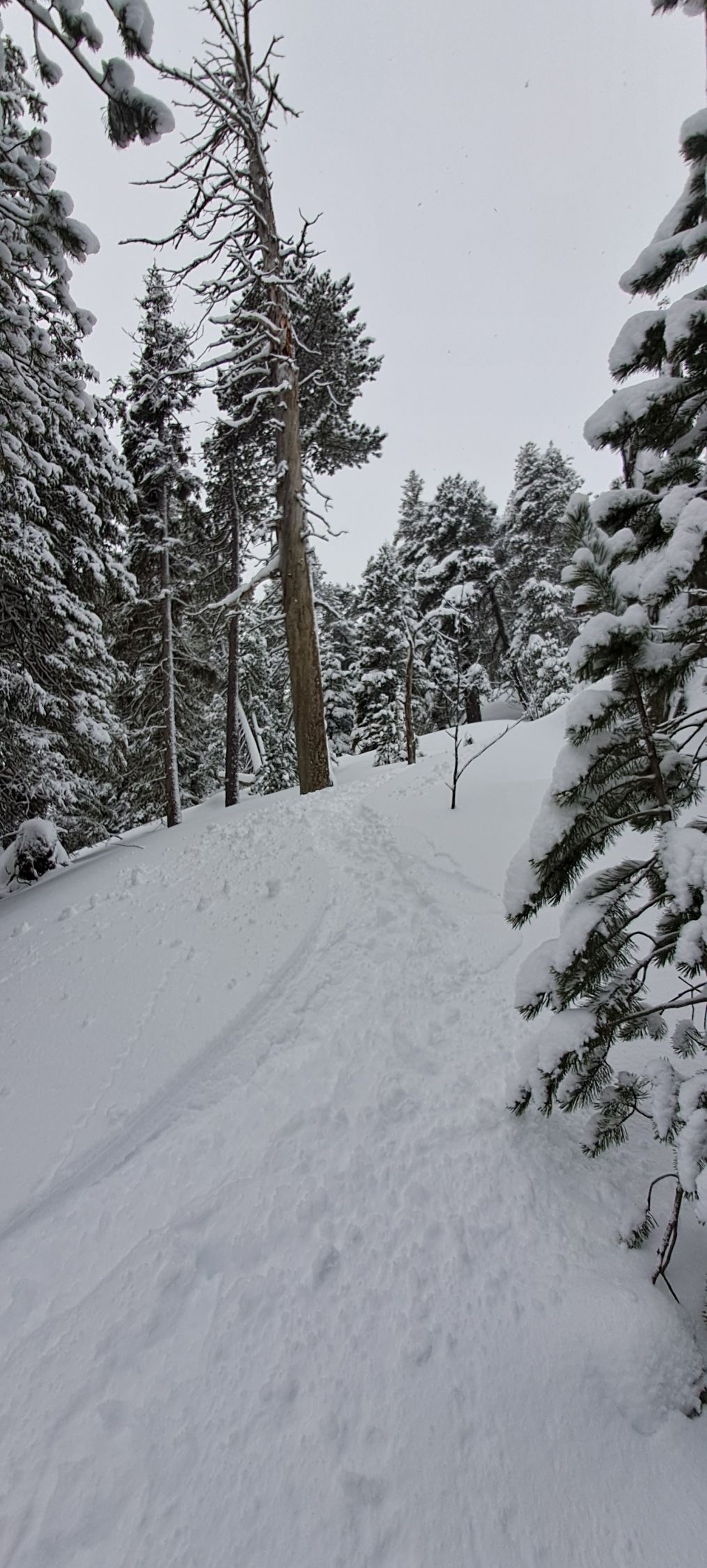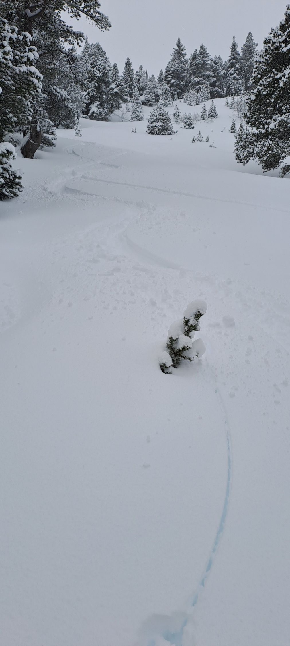 Super eingeschneit.Wenig Wind bearbeitet. Keine Lawinengefahr auf dueser Route.