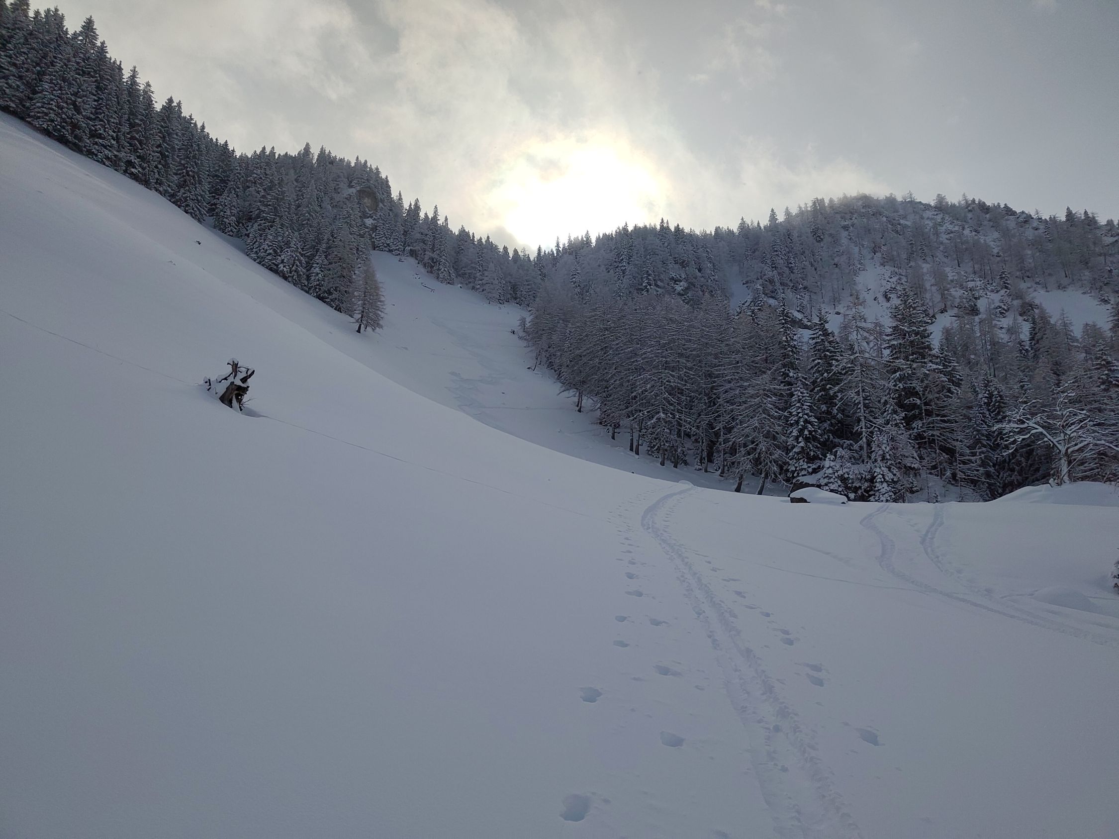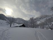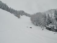 Gut fahrbarer Pulverschnee ab Parkplatz, nur sehr vereinzelter Bodenkontakt.