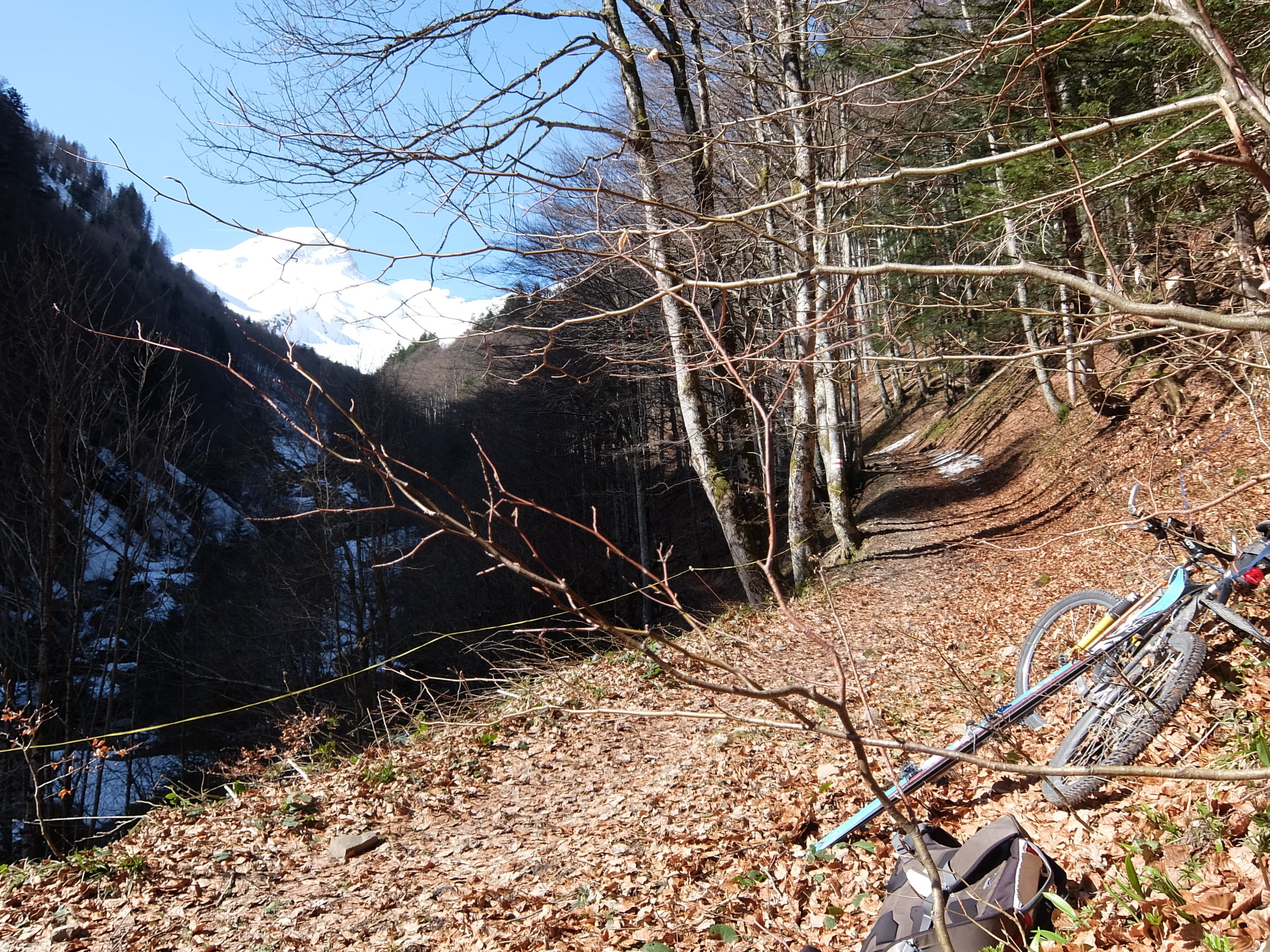 Gross und Chli Alvier, zuerst der Grosse mit Ostabfahrt, dann wieder Rinne hinauf zum Kleinen, Abfahrt in der Rinne bzw. über die Hänge in Richtung Chrummenstein. Für mich der perfekte Alvier-Besuch... es braucht aber einiges an Überzeugung um im Dunkel bei stürmischem Föhn in Hüseren auf dem Bike zu starten. Zudem informiert eine Tafel, dass der Weg über die Tobelbrücke in Richtung Buchserberg gesperrt ist, tatsächlich ist der Weg erst ab der Tobelbrücke gesperrt. Die ersten Meter hinauf auf dem steilen Wanderweg trage ich noch das Fahrrad, bei der Abzweigung zum Bach ist Bike-Depot. Ich laufe den rechten Weg hoch auf Schnee und Matsch, dann auf den Weiden hat es durchgängig Schnee. Der Wind legt sich etwas, im Gipfelbereich wird er auch erträglich sein. Zum Aufstieg wähle ich heute eine Route auf der rechten Seite, Richtung Chrummenstein. Ich quere dann nach links und komme auf die "normale" Spur ab Berghaus Malbun. Da ich zur Zeit über keine Harscheisen (mehr) verfüge (Details siehe weiter unten...) lege ich, den Bruchharsch suchend, eine gemütliche Spur in der Rinne unter dem Chli Alvier. Teilweise kann ich eine Spur vom Vortag nutzen, die bis in das sehr gut gefüllte "Couloir" führt. Dieses schaffe ich zu 2/3 mit Skis, die letzten 5-6 Meter gehe ich aber doch zu Fuß. Den Gipfel habe ich für mich alleine und eine etwas längere Pause sowie ausgiebiges Fotografieren ist heute Pflicht. Die Nordost-Direktabfahrt, um 9 Uhr, auf aufgefirntem Pulver geht sehr gut, wenn auch der Schnee schon auf der nassen Seite ist. Ich quere dann direkt unter der Nordwand und komme wieder (auf ca. 2100 m) in die Rinne unter dem Chli Alvier. Hier sind inzwischen 2-3 Tourengeher in Richtung (Gross) Alvier tätig. Ich felle wieder an und gehe hoch zum Chli Alvier, nur die letzten Meter sind auf abrutschender oberen Schicht etwa mühsam, die gehe ich zu Fuss. Den (deutlich luftigeren) Gipfel hab ich wieder für mich alleine sowie die Abfahrthänge auf durchaus gut fahrbaren Schnee, der im mittleren Teil schon schwer wird. Unten im Schatten ist er noch hart gefroren und so kratzend fahre ich auf der rechten Seite des Baches über Lawinenkegel und wenigen aperen Stellen bis ziemlich weit hinab. Auf ca. 1150 Meter, nicht viel früher als im Winter, quere ich den Bach und laufe ein paar Minuten zum Bike-Depot.