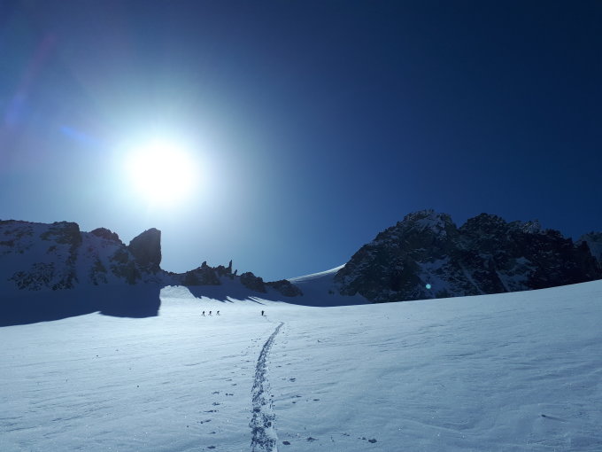 Excellentes conditions depuis Trient: bon regel jusqu'à 1900m, puis poudreuse. Trace très sportive jusqu au glacier des Grands. Ensuite trace à faire. Glacier bien bouché. Accès au sommet avec pas mal de neige mais passe bien en crampons. Descente magnique par le couloir du pissoir et encore en dessous. 1500m de poudreuse, incroyable !! Neige de printemps puis un peu collante jusqu au parking..