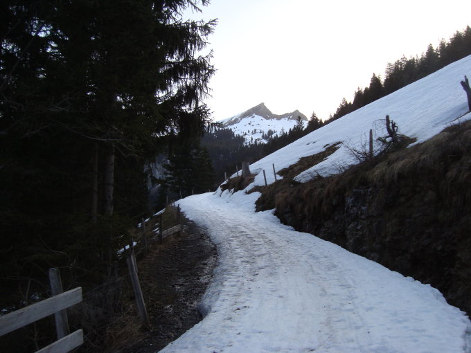Es hat noch genug Schnee im Gebiet für Wochen. Im waldfreien Bereich wird die Forststrasse bei den Temperaturen wohl zunehmend ausapern. Jetzt noch gehen und die Verhältnisse nutzen, wer kann, Zeit und Lust hat.