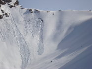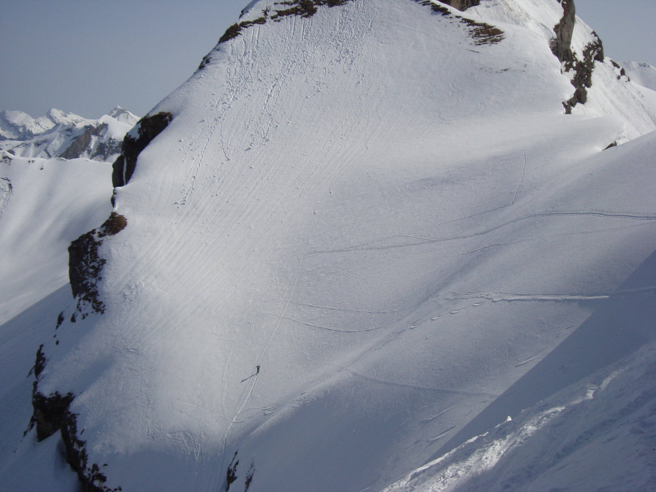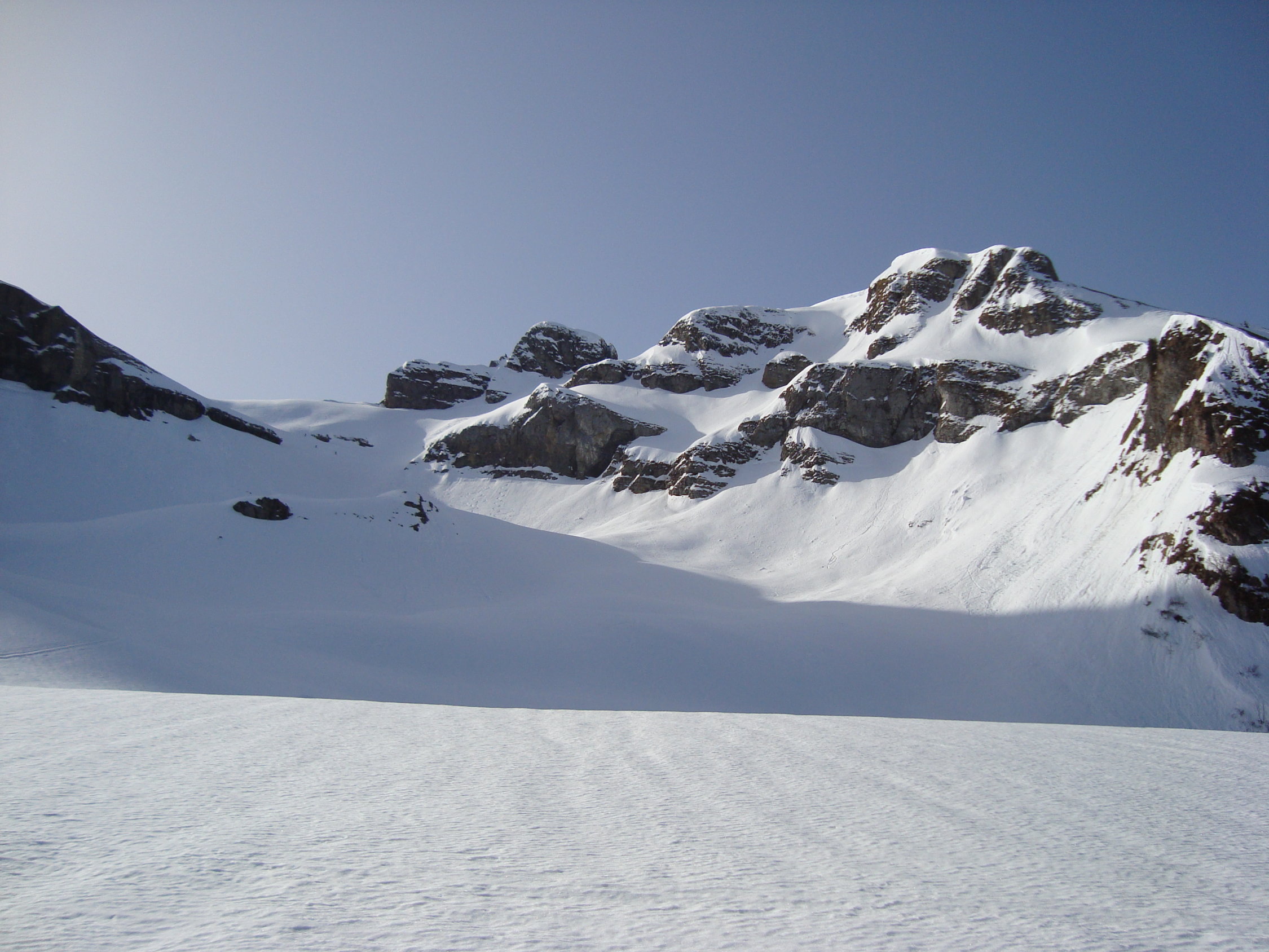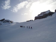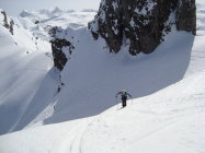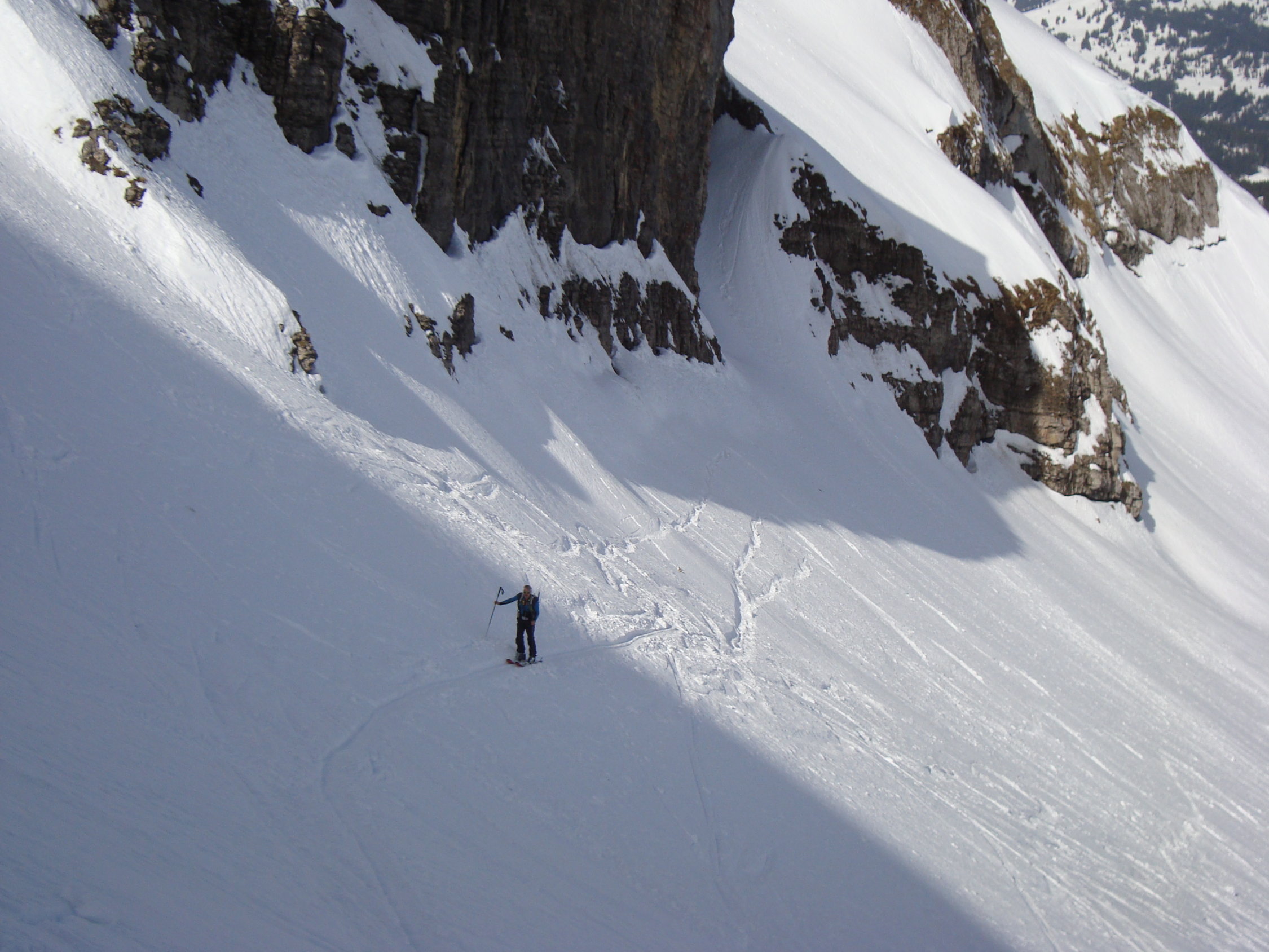 Die langen Traversierungen waren heute problemlos zu begehen. Der schon früh "sonnenverwöhnte" Gipfelhang war schon sehr stark aufgesulzt.