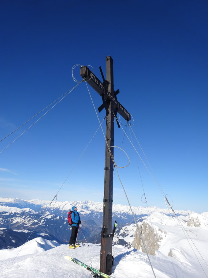 Genügend Schnee ab P-Platz St. Antönien. Wir starteten in Partnun, alles gut gefrohren. Der Einstieg ins Gemschtobel hatte durchgehend guten Trittschnee. Im oberen Bereich des Gemschtobels war es zum Teil glasig. Abfahrt ab Gipfel um 8.45 Uhr war heute zu früh. Der starke Wind verhinderte ein frühes Aufsulzen der Osthänge. Ein grosser Teil des Gemschtobel war ruppig.