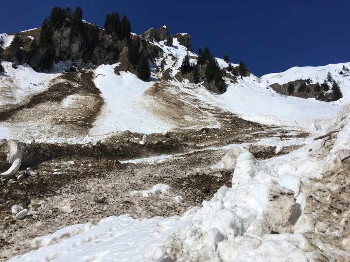 Einige Schnee Rutsche hängen noch oben, also früh dran sein.