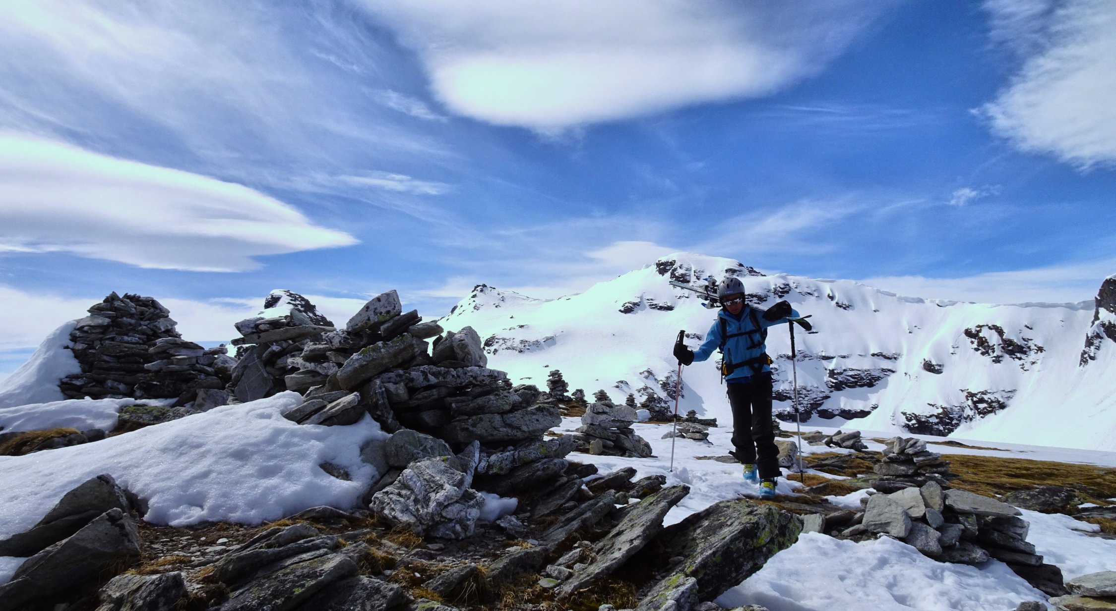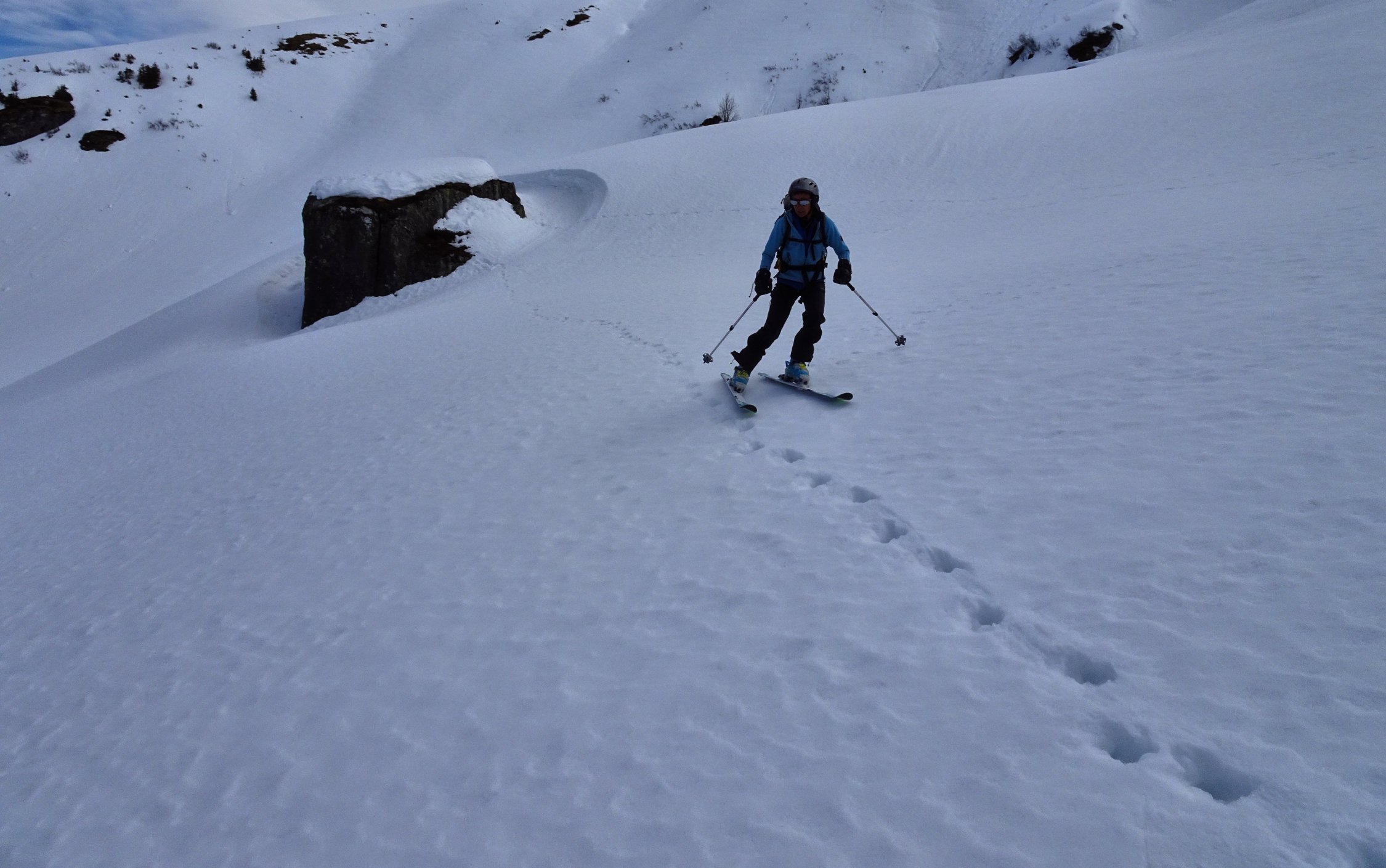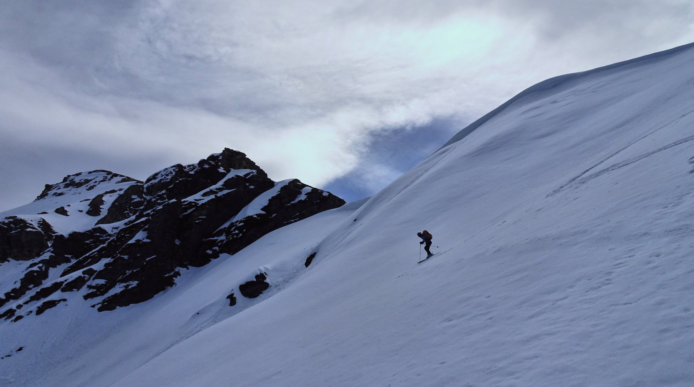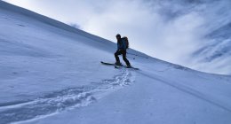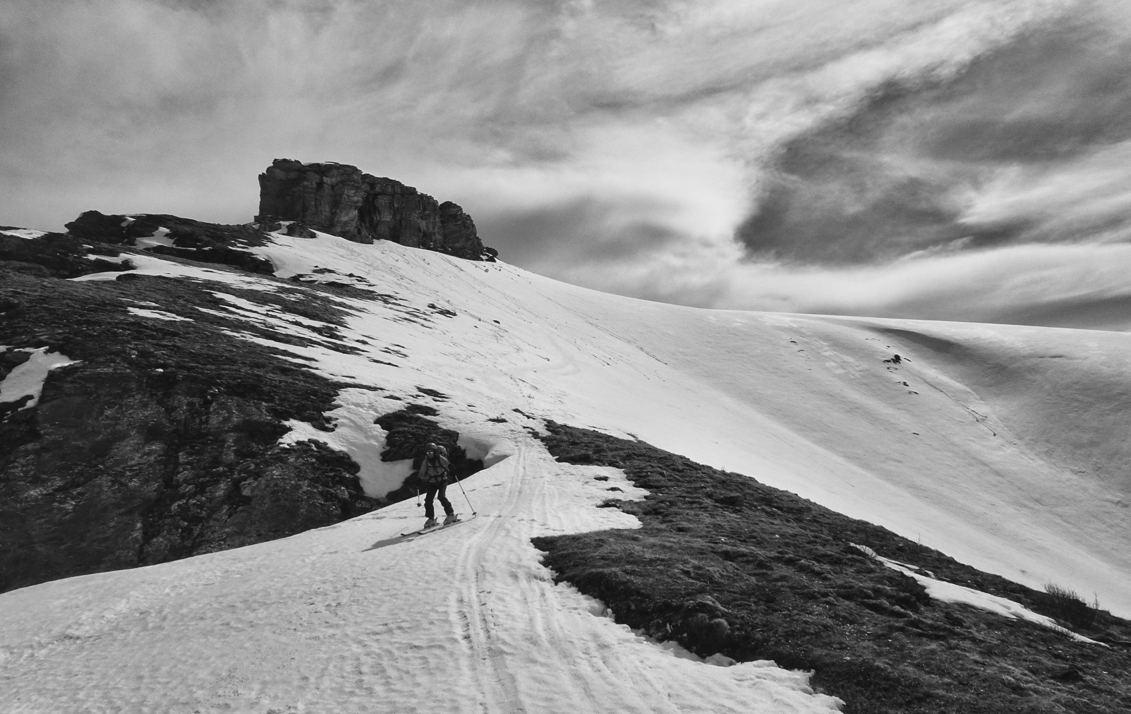 ... nach der Autofahrt zur Mittelstation der Pizolbahn geht's durch das verlassene Skigebiet hinauf zur Pizolhütte und weiter auf der üblichen Route zum Gamidaur. Heute herrschen anspruchsvolle Verhältnisse. Die Schneedecke ist hart gefroren und verlangt ein sicheres Aufsteigen und Abfahren.