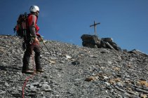 Start in Engelberg-Herrenrüti 1163m, ab da Fahrverbot. Weiter zur Spannorthütte 1956m. Von dort auf steilem Geröll-Pfad zur Schlossberglücke 2627m. (Am Morgen kommt da keine Sonne hin, man steigt also glücklicherweise im Schatten auf!) An der Schlossberglücke anseilen, Steigeisen montieren und über den Glatt Firn, der nicht nur Firn sondern auch Gletscher ist weiter. Um den Spannort herum laufen, zum Spannortjoch 2922m. Der Einstieg in die Spannort Felsen, ist bei den Koordinaten: 682765/181935. Anfangs durch ein steiles Firnfeld. Sobald man im darüber liegenden Fels, eine orange&graue Sicherungsschlinge sieht, ist man richtig. Leicht kletternd auf den Goipfel. Teilweise auch eine schwache Pfadspur im Schutt vorhanden. Zeitbudget für den Aufstieg: 6Std