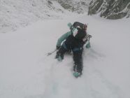 Gut. D.h. Die Wetterverhältnisse waren gut. Leichter Schneefall, und ab und zu Windböen bis 50km/h. Wir sind über den Nordgrat aufgestiegen, um über das Couloir abzu seilen. Beim grossen Aufschwung auf dem Nordgrat, bis 40 Grad Hangneigung war der Schnee gebunden, und wir sind hier umgekehrt.