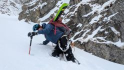 Normale Skitouren-Ausrüstung. Plus Pickel, Steigeisen und Seilausrüstung für Couloirs.
