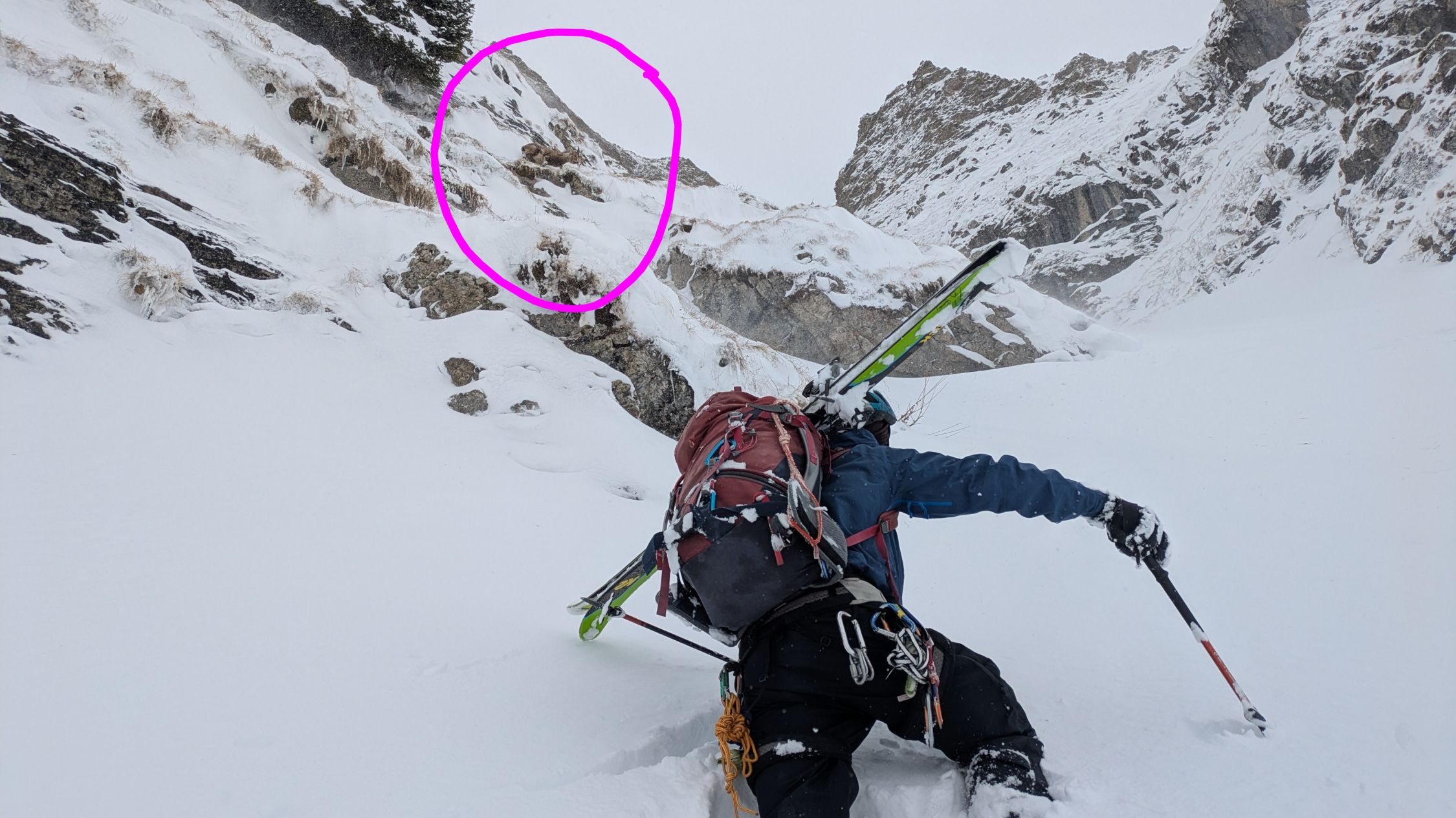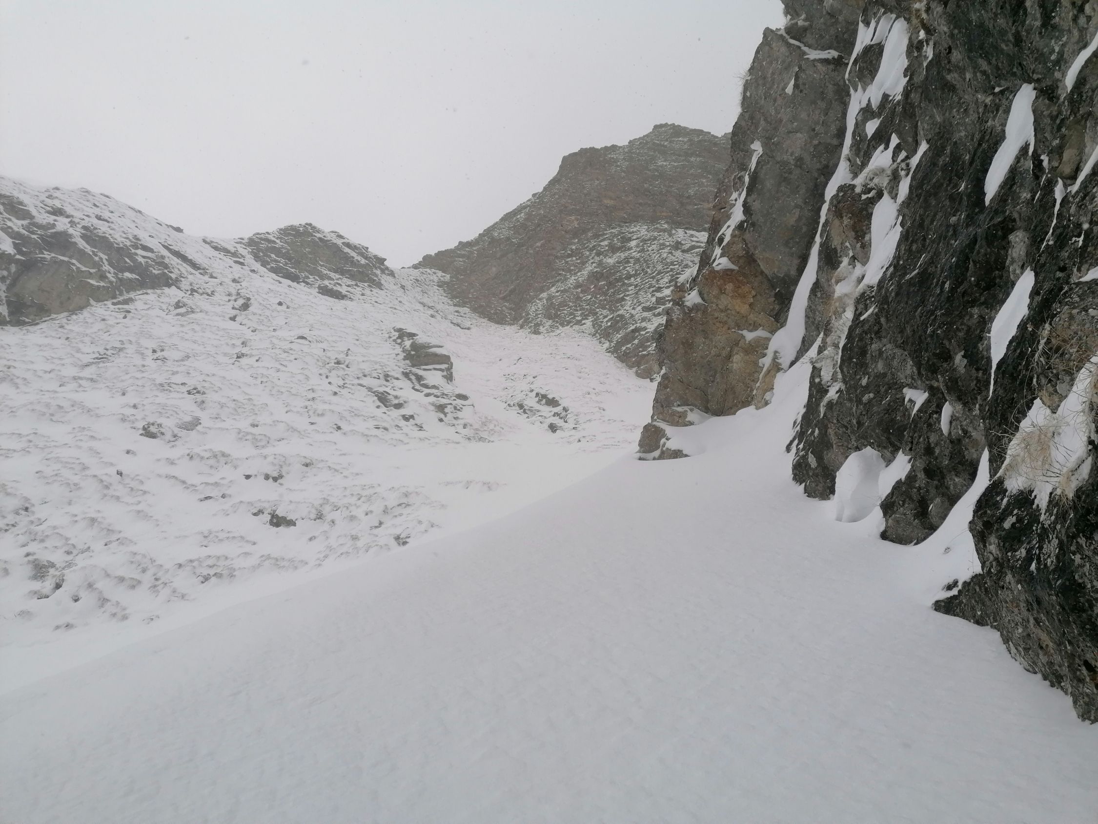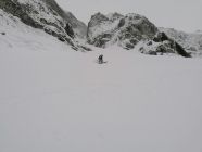 Grossartiges und spannendes Couloir hoch über dem Col des Mosses, und dem Lac Lioson. Der Aufstieg erfolgte vom Col des Mosses über den genannten Lac zum Couloir. Uns war klar, das es zuviel Neuschnee haben würde, und somit war nicht das Ziel das gesamte Couloir zu durchsteigen.