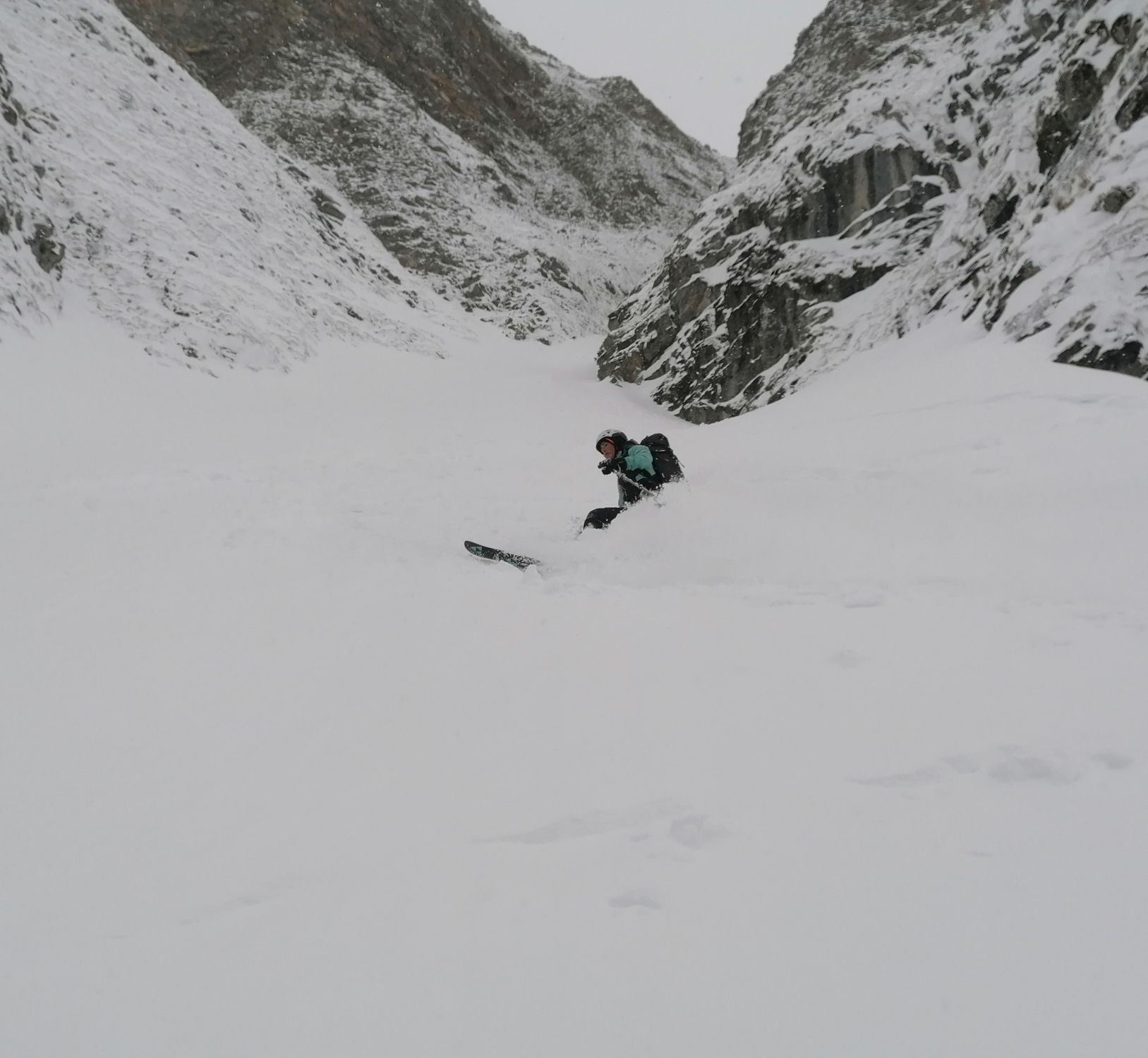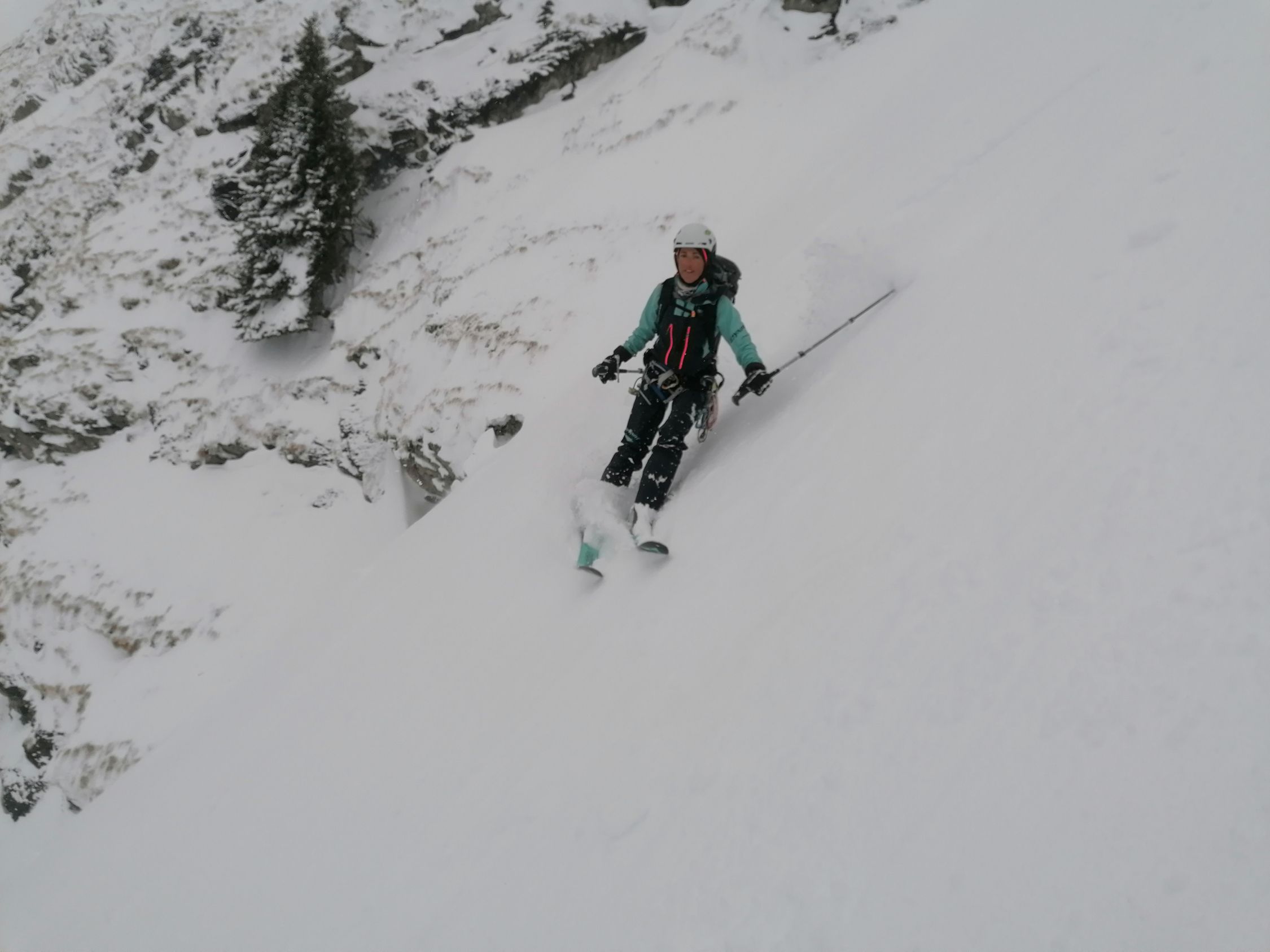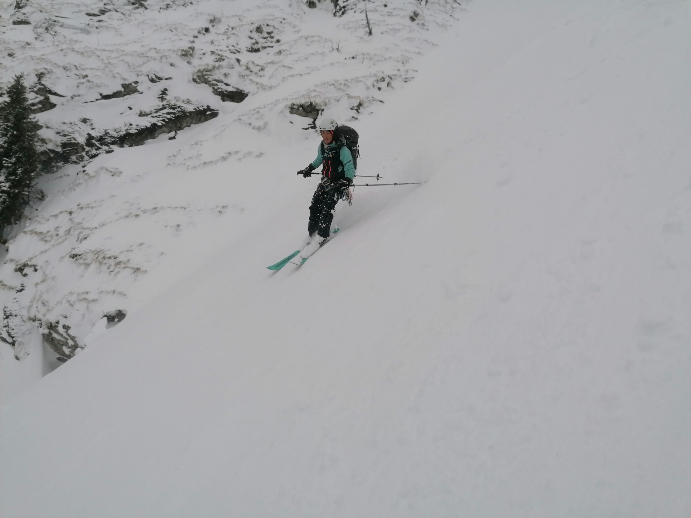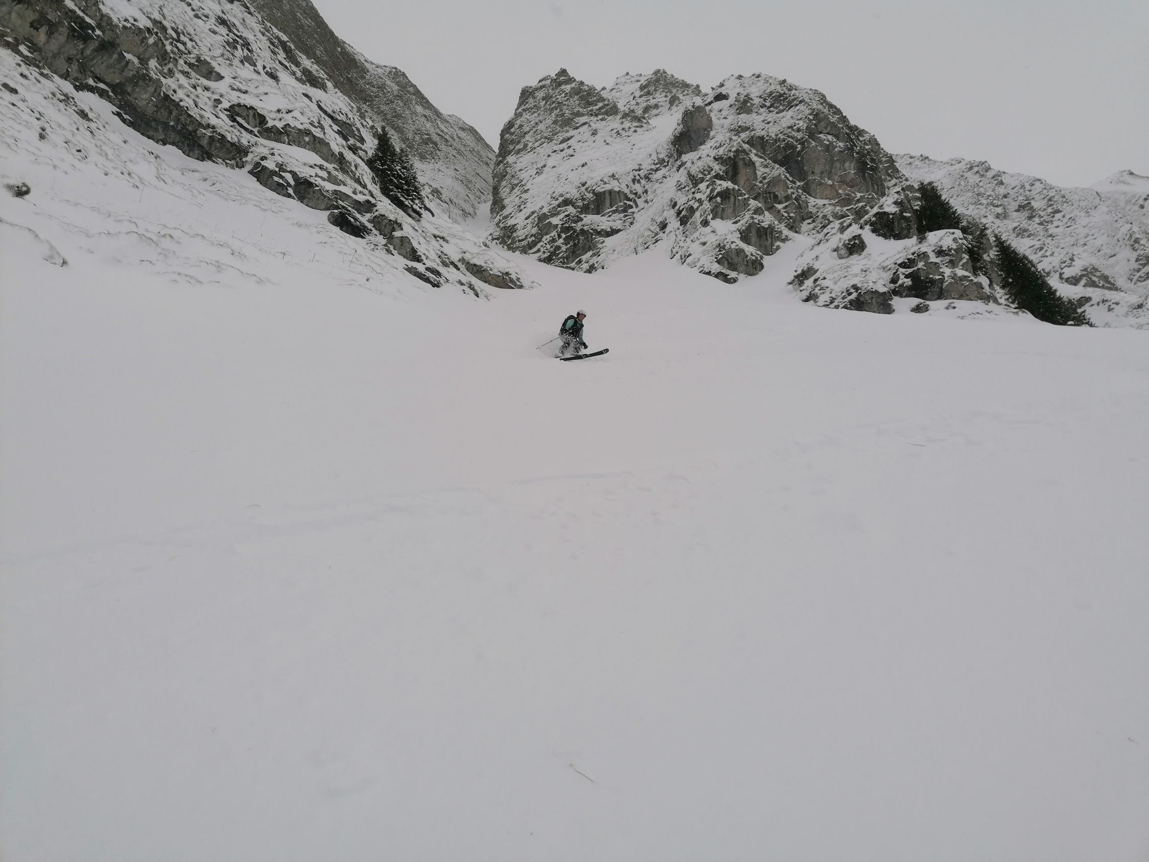 Schneeverhältnisse: Es hatte im Couloir bis zu 1m grandiosen perfekten Pulverschnee. Es war ein Traum hier abzufahren.