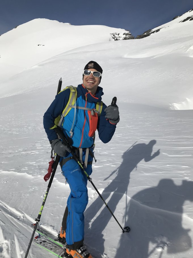 Sind vom Tierfehd hochgestiegen und haben den Gipfel um halb 10 bevor der grosse Ansturm war erreicht. Nach kurzer Gipfelrast sind zur Porta da Gliems abgefahren. Bei Punkt 2976 machten wir eine ausgiebige Pause und genossen die Sonne und die Einsamkeit (nur wir und eine Vierergruppe wählte diese Abfahrtsvariante). Nun folgten 1000 Hm oben sehr schöner Pulverschnee und im unteren Teil dann eine feine Sulzabfahrt bis zur Alp Russein.