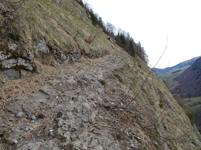 Eigentlich wäre der Weg ab Chlus „gesperrt“; auch hängen vor der Wildkirchlihöhle Seile quer über dem Weg!?