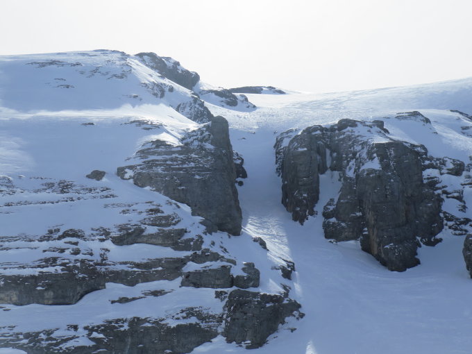 Abfahrt durch den Couloir in sehr gute Verhältnisse