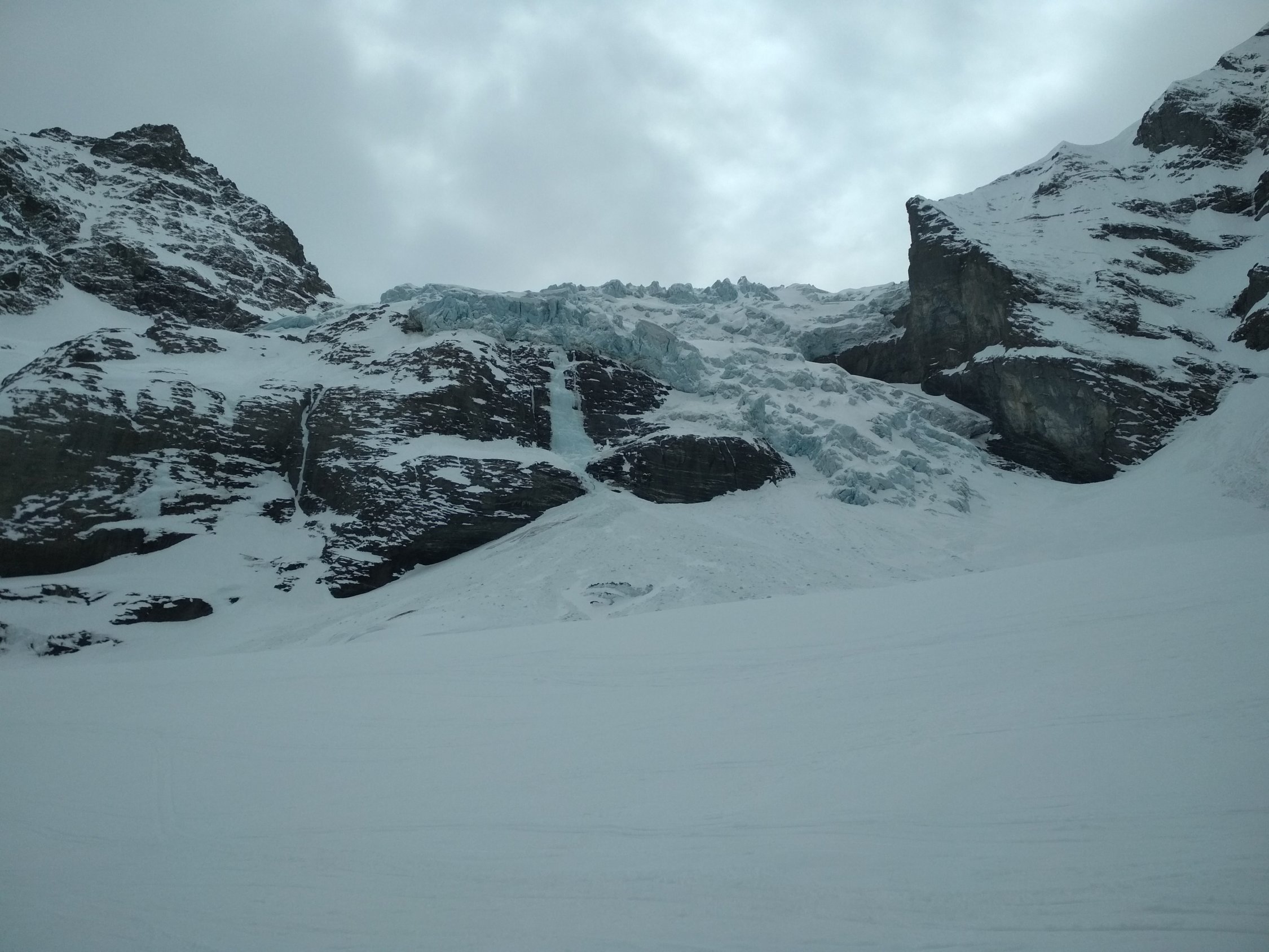 Tolle sehr lange Abfahrt bis in die Rosenlaui. Oben noch ein wenig Bruchharsch, dann bald sulzig. Der Rosenlauigletscher ist noch sehr eingeschneit. Beeindruckende Landschaft und fantastische Gletscherabbrüche! Wir konnten bis zur Strasse runter fahren.