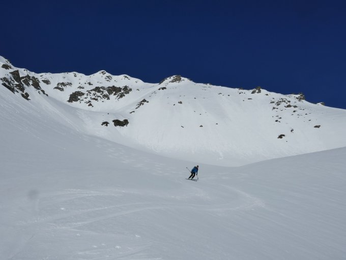 Hart gefroren im Aufstieg, 9.30 optimale Abfahrtsbedingungen über die SE Flanke durch den Ritzligraben