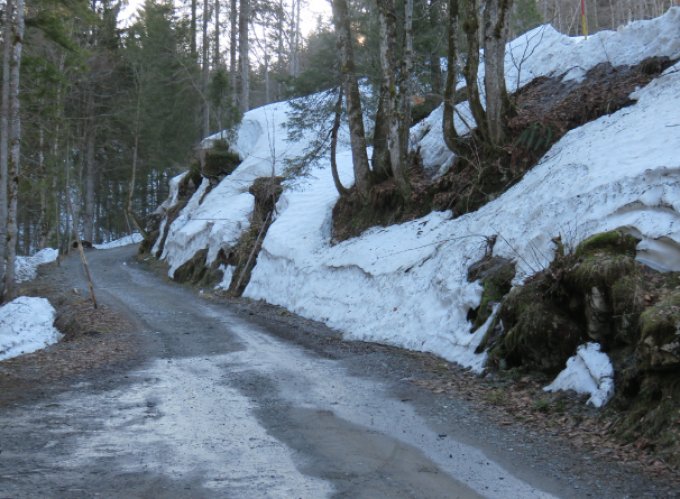 Abfahrt bis zur Waldgrenze sehr schöner Sulzschnee, dann Nassschnee aber gut fahrbar.