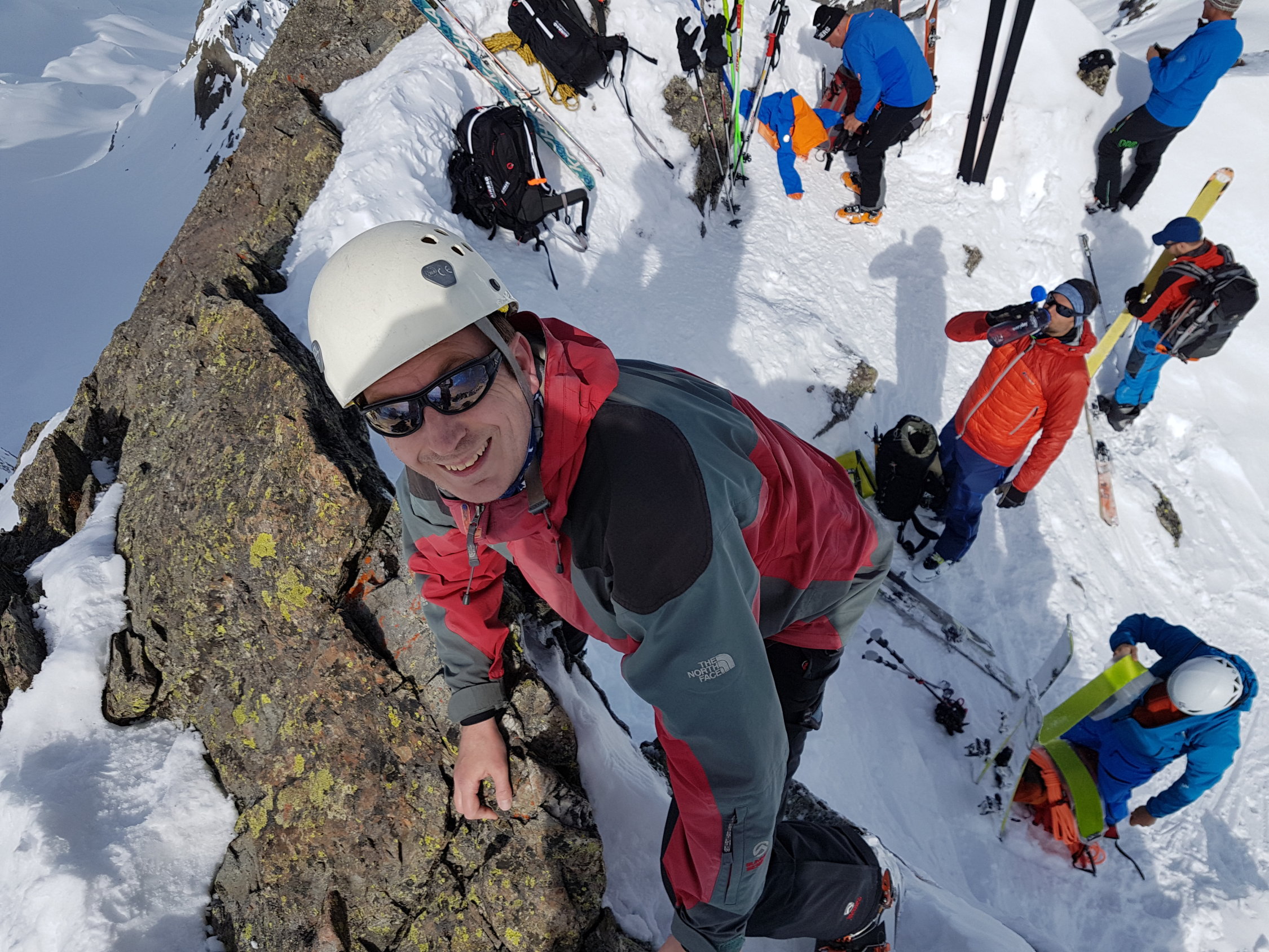 Traversée underneath Wendenhorn was done with skis on the back - this is the most difficult and steep part. We did it with crampons for comfort (at that day not really necessary).