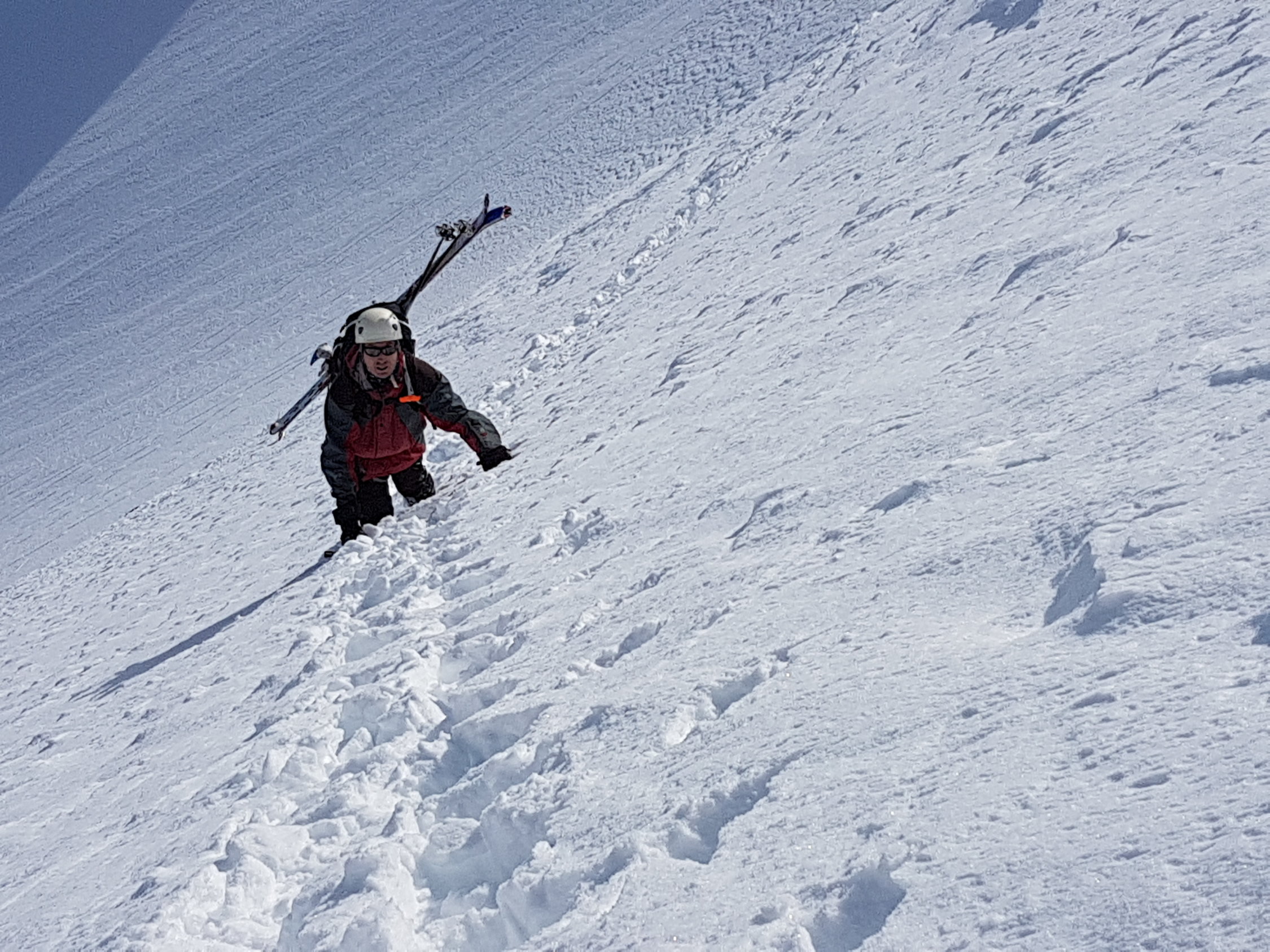 40° climb with crampons and piolet. Peace of cake in these conditions.