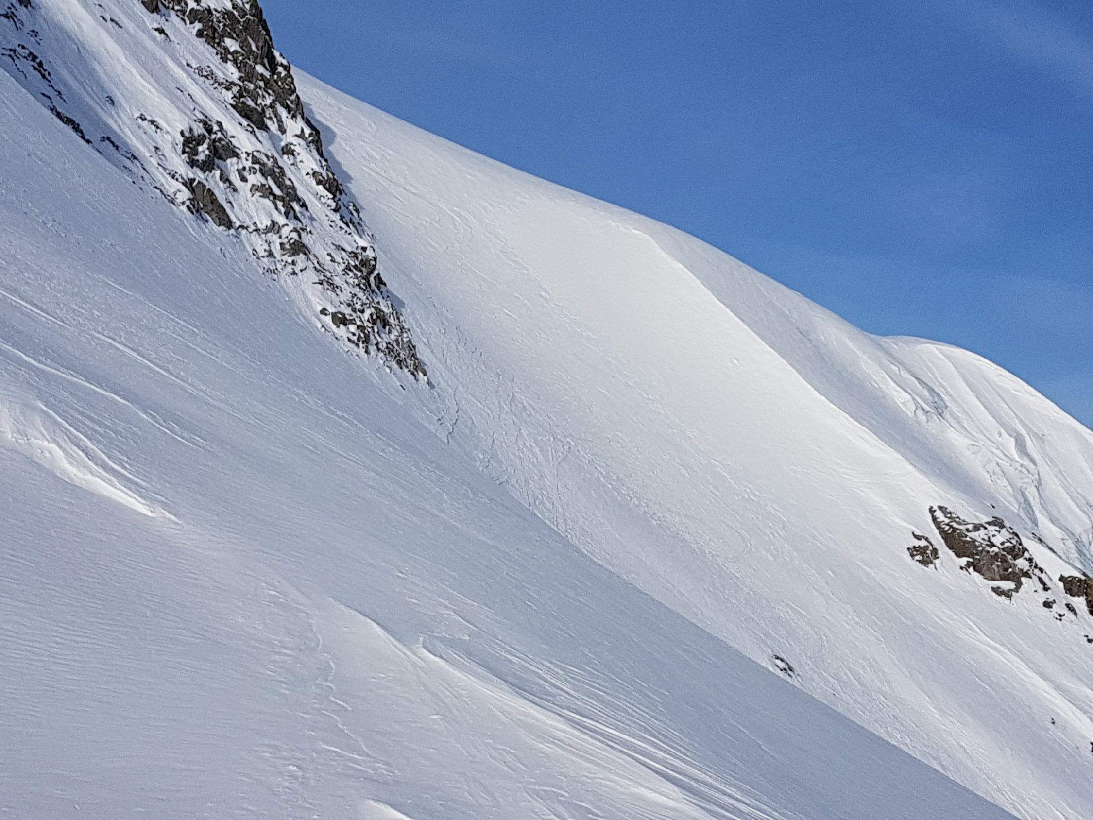 Steep slope towards Sustlilucke (S) but large enough to make a comfortable trace.