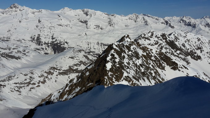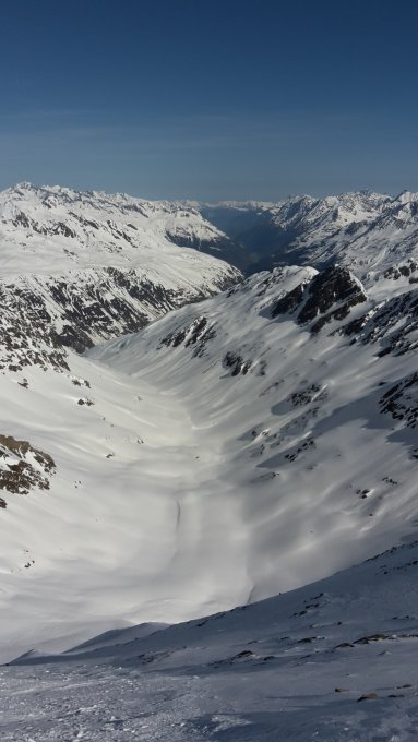 Start um 5:00 Uhr in Obergurgl, von unten weg Schneedecke tragend gefroren. Gute Spur im oberen Teil der Route in die Scharte im Nordwestgrat, bis hier mit Ski. Ski einen Teil des NW-Grates mit hochgetragen, da man vom Grat die steile Flanke abfahren kann (direkt vom Gipfel wurde wohl ebenfalls bereits abgefahren). Grat gut zu gehen. Abfahrt um 10:15. Oben wenige cm Pulver auf harter Unterlage, weiter unten im Hang schwerer gesetzter Pulver, der sich aber ganz gut fahren liess. Auf 1650 m wieder angefellt und Aufstieg zur Essener Spitze, da die Schneeoberfläche noch komplett hart war. Fussaufstieg zur Essener Spitze gespurt und problemlos. Abfahrt vom Skidepot der Essener Spitze um 12:15 Uhr war heute gut (11:30 wäre vlt. optimal gewesen). Oben weicher Altschnee, der sich sehr gut fahren ließ, ab dem Verwalljoch bester Firn, der auch im Talboden des Verwalltals noch gut tragend war. Über die Piste dann direkt bis zum parkplatz an der Festkogelbahn.