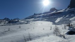 Eine Gruppe habe ich erst bei der Abfahrt um 16:00, die zur Hütte aufstiegen, angetroffen.