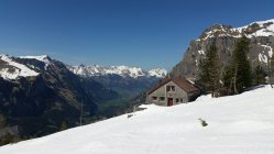 Die Skis können bei der längeren Traverse bei Undere Biberg ab 1'520m angeschnallt werden; jedoch hat es erst nach der Abzweigung (kurz vor P 1522 hat es eine blaue Tafel) bei 1580m eine durchgehende Schneedecke.