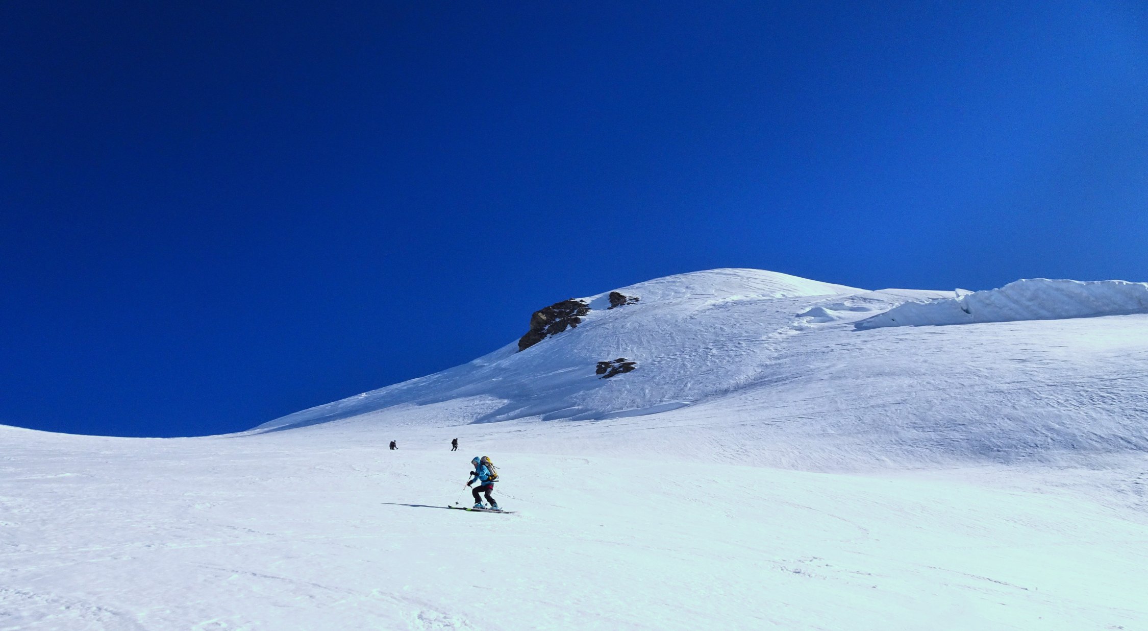 Die Verhältnisse sind ausgezeichnet. Die Gletscher sind tief eingeschneit und der Gipfel kann mit den Ski bestiegen werden. Die Abfahrt durchs Lötschental ist bis nach Blatten gut möglich.