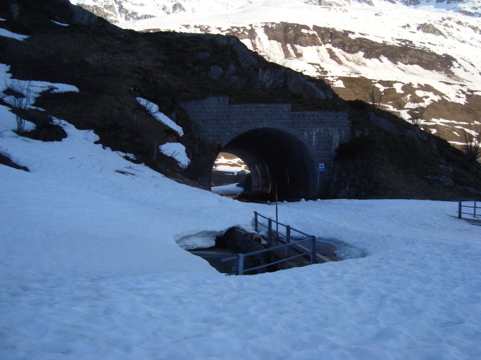 Die Ski können nach 10min. Tragen hinter dem Tunnel angelegt werden. Der Aufstieg war von unten bis zum Rücken(ca. 2400M.ü.M.) gut auf einer tragenden Kruste zu bewältigen. Ab da bis zum Gipfel sulzig und auf guter griffiger Spur ohne Harscheisen machbar. Für den Aufstieg langte mir ein Langarmshirt.