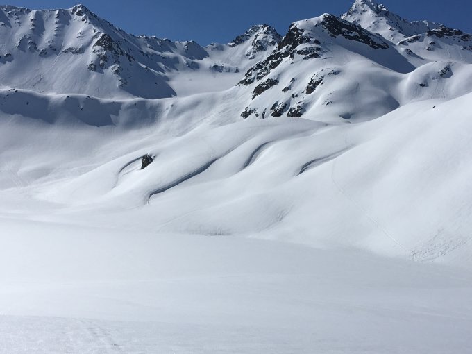 Ins Fürggeli, dann Abfahrt - ab 7:45 - durchs Isentäli, oben noch etwas hart ab Hälfte bester Film. Bis Säss, dann aufgefellt und durch Jörital zu Winterlücke, unten hart oben dann Firn. Abfahrt 11:15 , bis Wägerhus hart und Firn (je nach Exposition) , dann nur Firn, links der Straße gehts am besten.