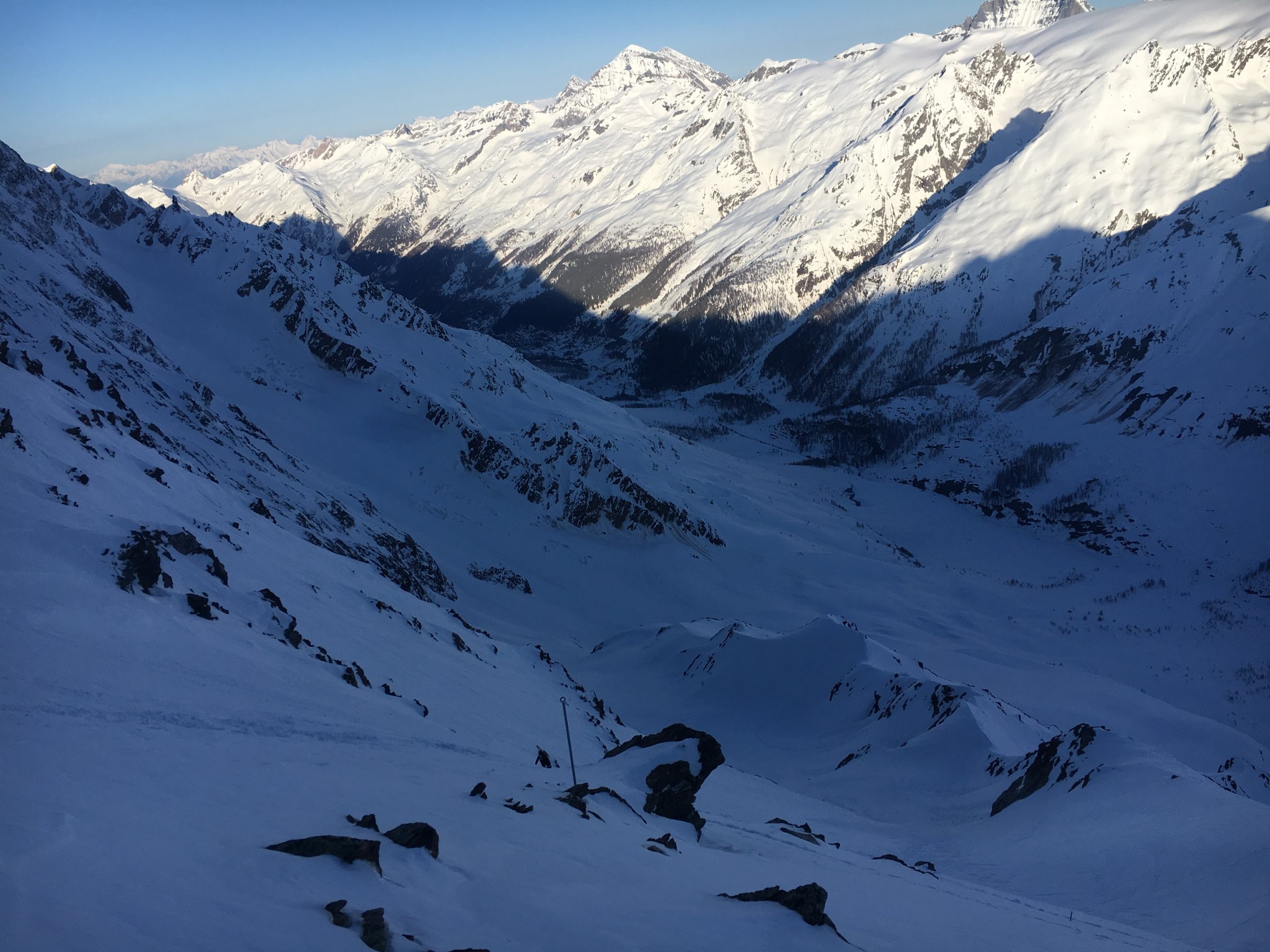 Wir wählten Hüttenzustieg über Beichpass: Steil, bis kurz vor dem Pass hart und griffig. Letzter Hang zum Pass zu Fuss in gutem Trittschnee. Schnee ab Blatten gefroren. Die Strasse nach Fafleralp ist noch nicht geräumt.