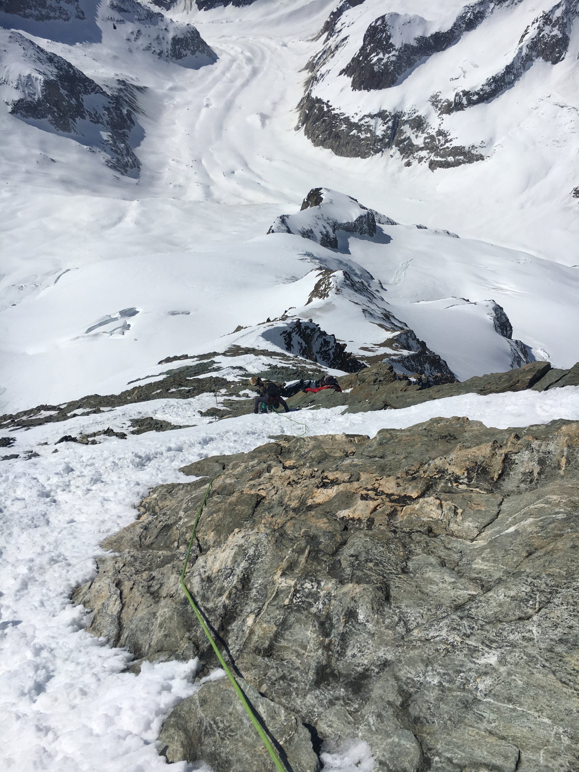 Obschon die Gletscher sehr gut eingeschneit sind, ereignete sich gestern Nachmittag leider ein schwerer Spaltenunfall am Aletschhorn.